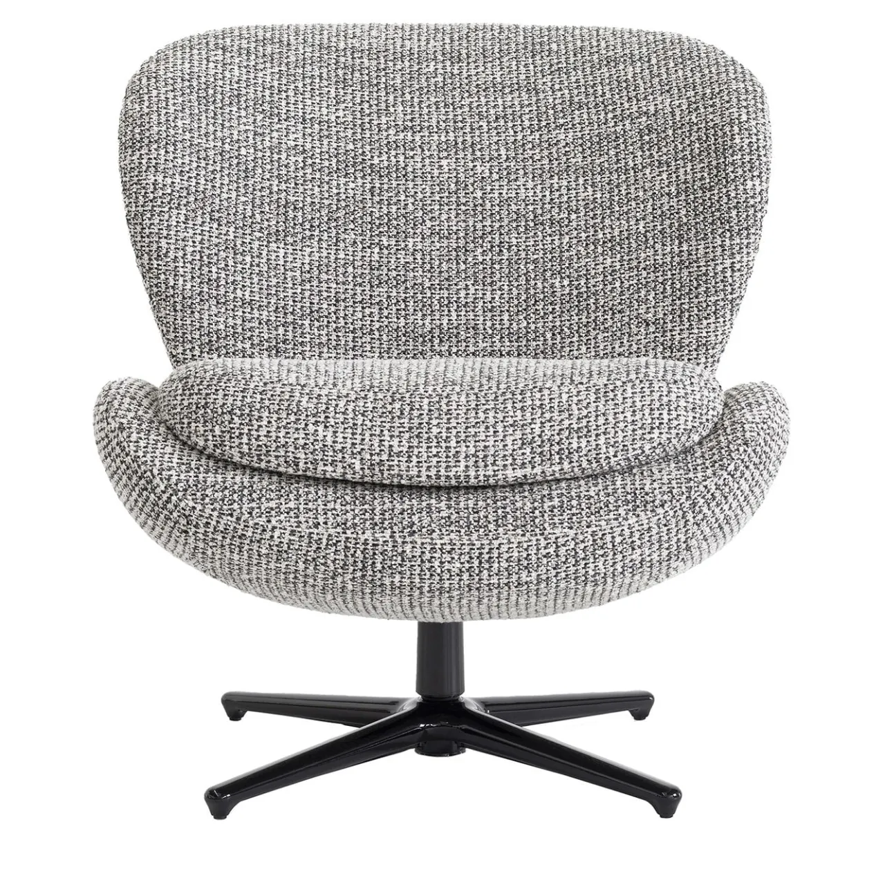 Estetica e funzionalità sono perfettamente combinate in questa straordinaria poltrona girevole, rivisitazione contemporanea di un classico senza tempo. Reinterpretando il design vintage a guscio unico degli anni ’60, presenta una seduta bassa e avvolgente con uno schienale imbottito in poliuretano espanso a densità multipla e fiberfill, il tutto rivestito con un tessuto a fantasia bianco e nero (Rivoli). La gamba è in metallo nero lucido. Per ulteriori dettagli, contattare il Concierge.