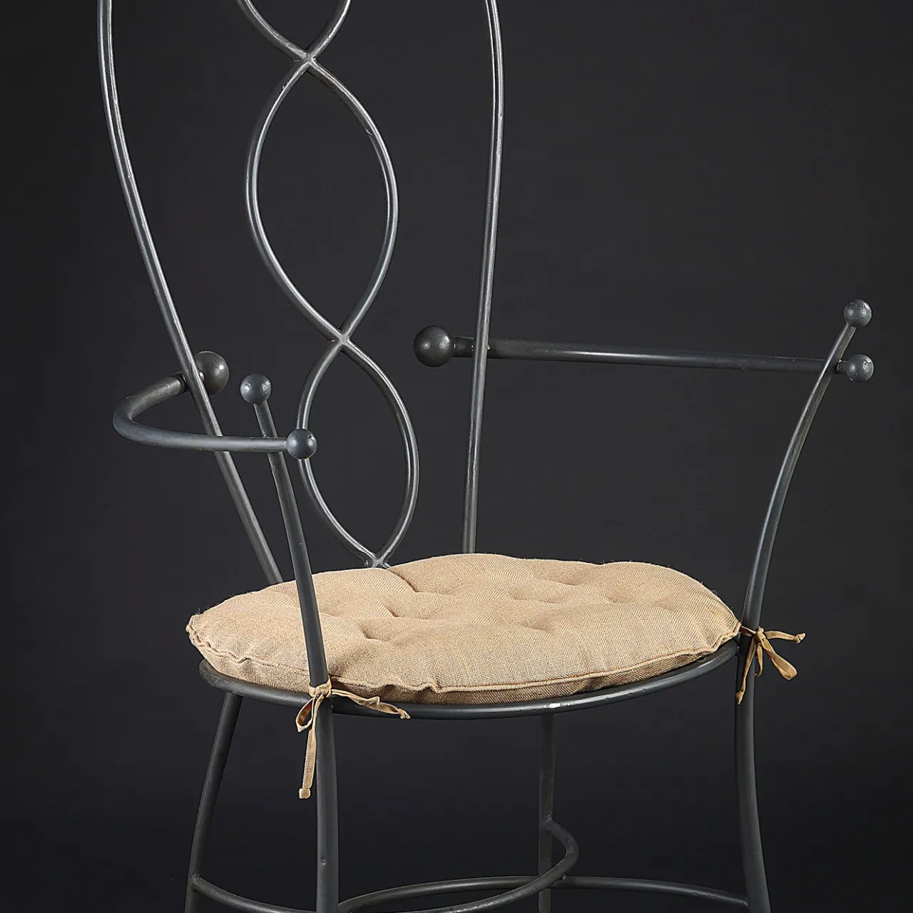 Una serie di curve che si incrociano e si intrecciano è il motivo decorativo dominante di questa splendida sedia che aggiungerà un accento romantico e retro-chic a qualsiasi interno. La struttura in acciaio inox forgiato comprende una seduta rotonda avvolta da braccioli aperti e uno schienale alto e tagliato. Ogni elemento è ornato da un accento sferico, compresi i piedi, mentre un cuscino rotondo con imbottitura trapuntata completa questo pezzo accogliente.