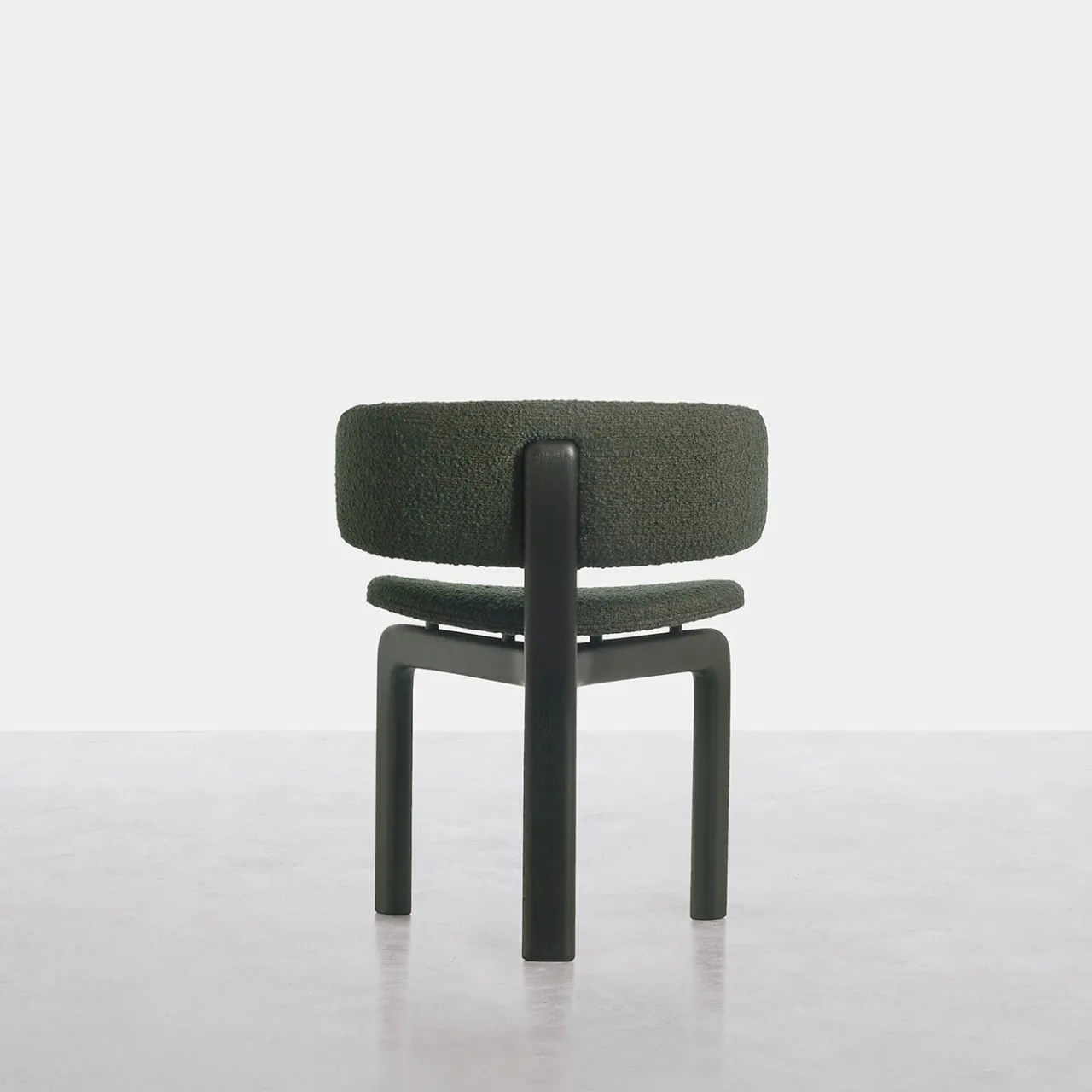 La sedia a tre gambe è un’idea che risale al secolo scorso e che trova in questo progetto una reinterpretazione giocosa e contemporanea. La silhouette avvolgente dello schienale riprende la singolare curva delle gambe e contribuisce all’originalità del design. Struttura in legno massiccio di frassino con finitura nera opaca. Seduta e schienale in compensato curvato imbottito in poliuretano espanso. Sono disponibili altri tessuti e pelli, per maggiori informazioni contattare il concierge.