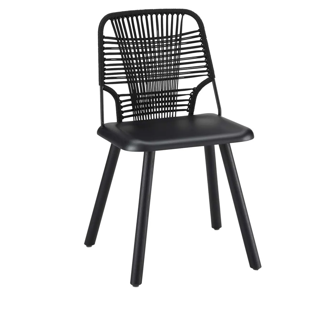 Una straordinaria dimostrazione di maestria artigianale, questa squisita sedia è un pezzo scultoreo disegnato da Emilio Nanni che vanta una silhouette contemporanea e accattivante esaltata da un look total black. Poggiata su una solida struttura in frassino con gambe sottili e inclinate, l’elemento distintivo di questo pezzo è il sedile posteriore caratterizzato da un magistrale disegno intrecciato in tondino di metallo e corda nera. Questo design è disponibile in altre finiture e colori; per maggiori dettagli, contattare il Concierge.