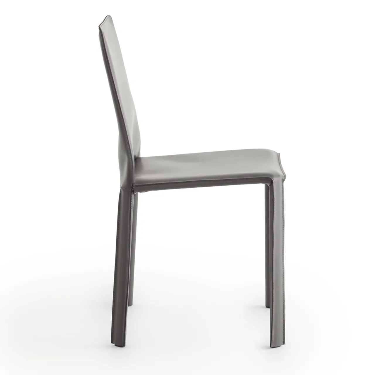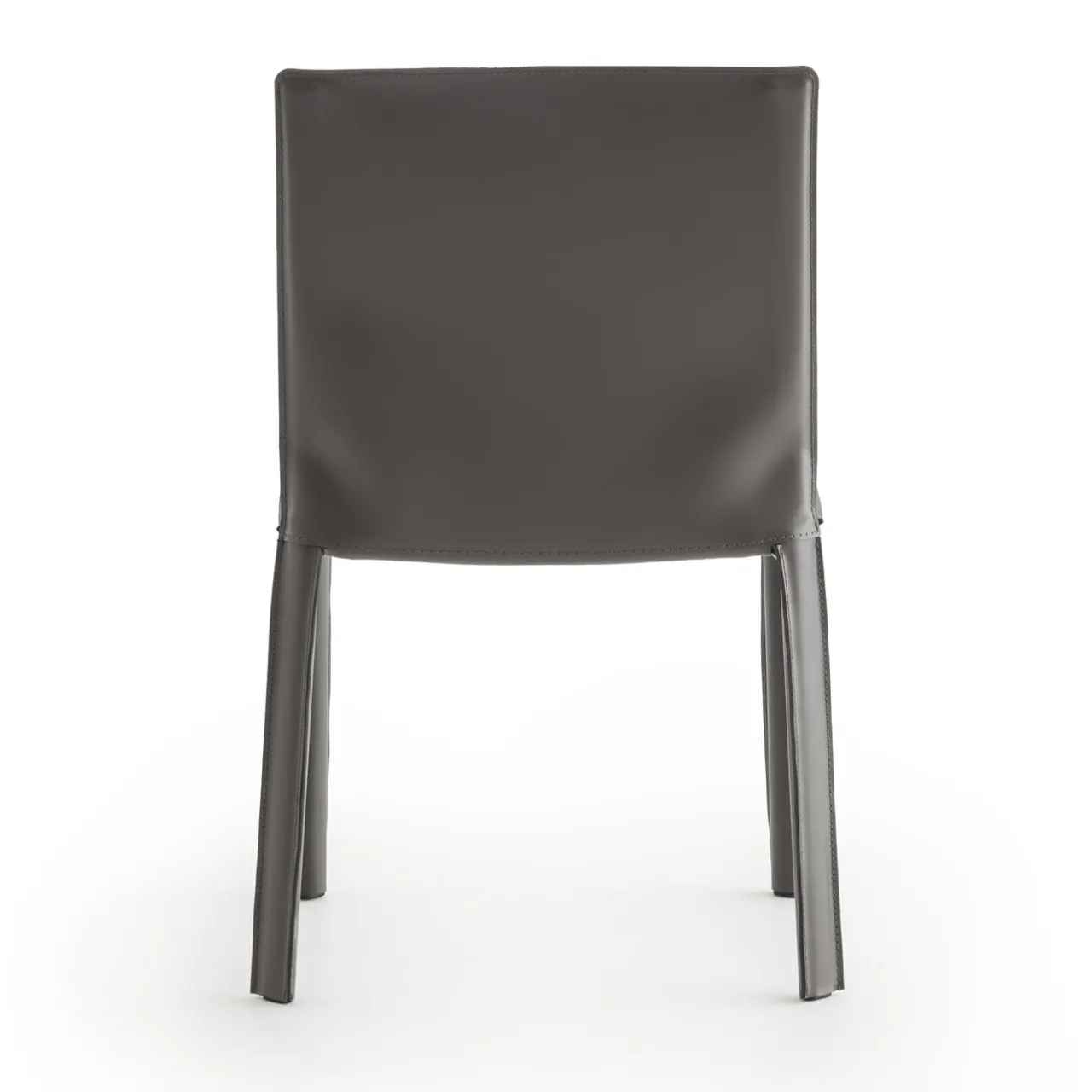Minimalismo e lusso si incontrano senza soluzione di continuità in questa superba sedia, la cui struttura metallica essenziale è interamente rivestita in pregiata pelle grigio antracite per una chiara dichiarazione di stile sartoriale. Modellato e cucito minuziosamente, il rivestimento abbraccia strettamente la struttura proprio come un abito sartoriale avvolge la silhouette di una persona, esaltando ogni centimetro della sua struttura altrimenti solo funzionale.
