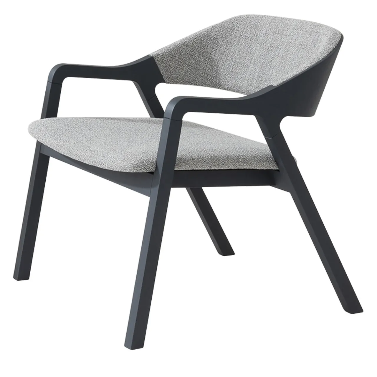 Questa raffinata poltrona lounge disegnata da Michael Geldmacher è un perfetto pezzo d’accento dove sedersi durante stimolanti conversazioni. Elegante e armoniosa, la sua struttura è realizzata in frassino massiccio laccato in grigio antracite ed è caratterizzata da gambe inclinate che si estendono tracciando il profilo dei braccioli lisci che si allargano fino a formare lo schienale curvo. Sia la seduta, alta 41,5 cm, che lo schienale sono rivestiti in tessuto a rilievo in una tonalità di grigio più chiara. Su richiesta, sono disponibili le certificazioni per il settore contract e commerciale.