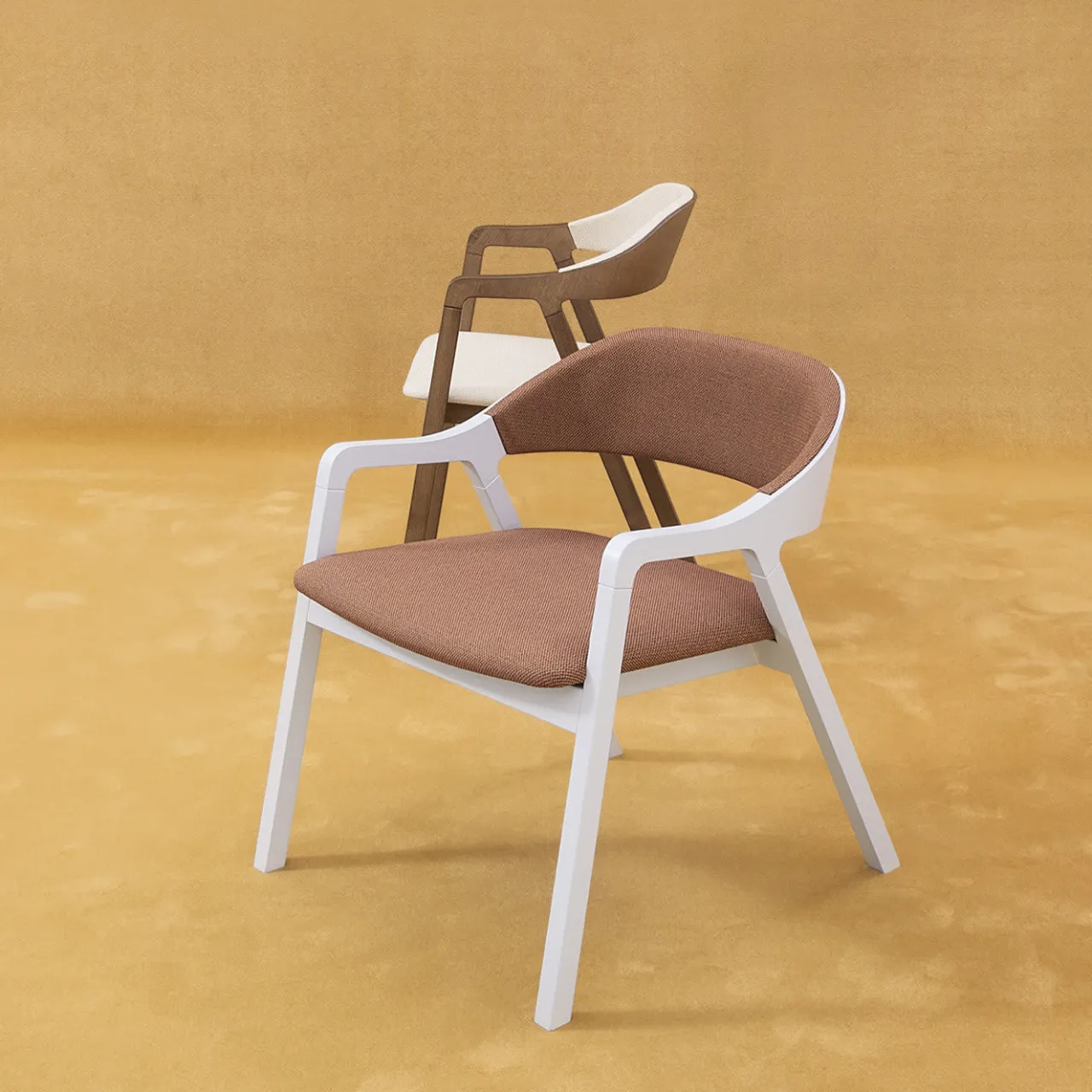 Disegnata da Michael Geldmacher nel 2018, la Layer Chair è caratterizzata dalle sue gambe, ispirate a un compasso aperto. Caratterizzata da transizioni fluide tra materiali e parti, la Layer Chair è stata progettata per spazi freschi e nuovi. È disponibile anche una poltrona lounge complementare.
