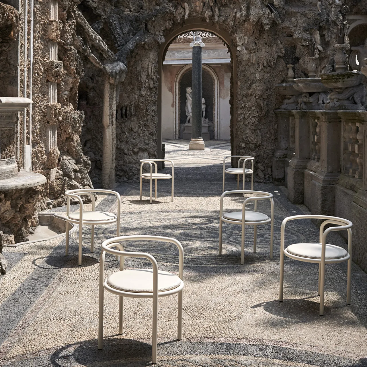 Raffinata aggiunta a un patio, a una terrazza, a un portico o a un bordo piscina, questa sedia contemporanea unisce stile e comfort. Parte dell’iconica collezione Locus Solus, disegnata originariamente da Gae Aulenti nel 1964, la struttura robusta ma leggera in tubolare d’acciaio è verniciata di bianco e vanta una seduta rotonda imbottita con un rivestimento in tessuto stampato con l’esclusiva opera d’arte Locus Solus. Il rivestimento è sfoderabile e lavabile e disponibile in tutti i tessuti del catalogo Exteta. Se i prodotti sono collocati completamente all’esterno, si consiglia l’acquisto di copriletto a prezzo maggiorato. Contattare il Concierge per ulteriori informazioni e opzioni.