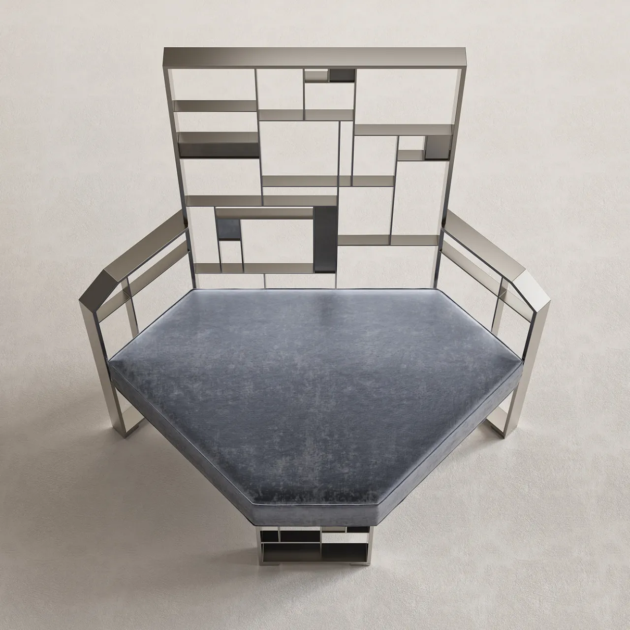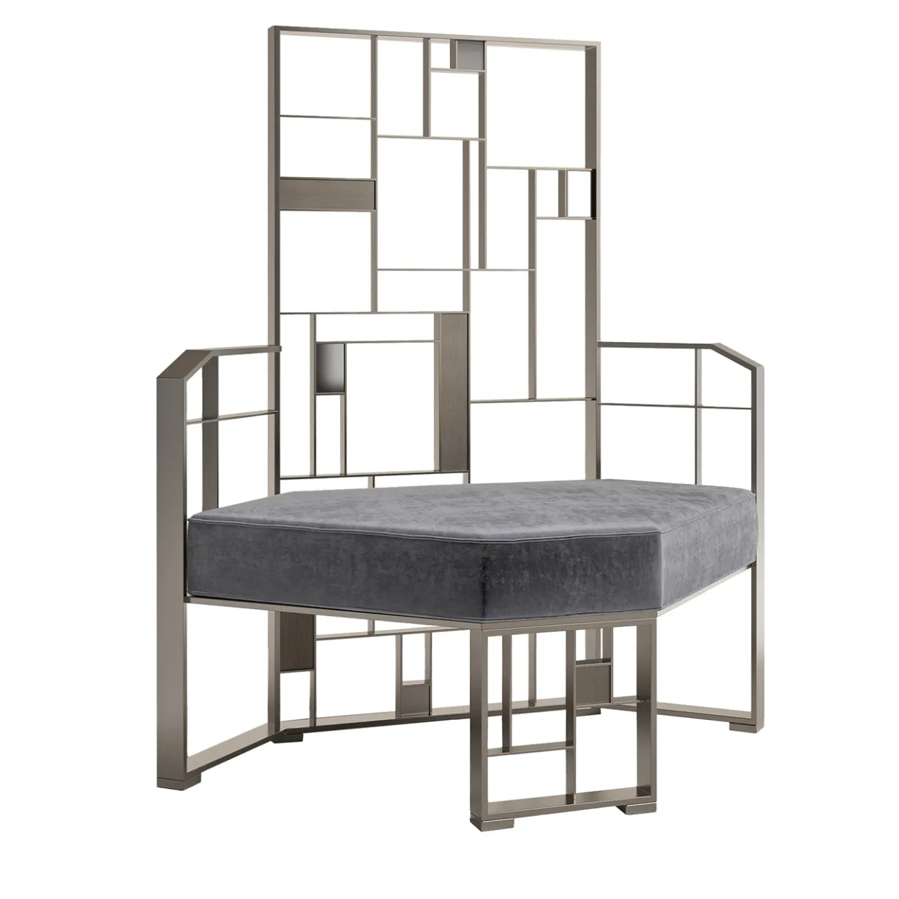 La sedia lounge MoNDRIAN con schienale medio presenta un design modulare realizzato in ottone argentato con dettagli in nichel nero, offrendo un’estetica geometrica straordinaria. Con uno schienale di altezza media e una costruzione a struttura aperta, bilancia l’arte scultorea e il comfort. Progettata da 8&A Architetti, questo pezzo funge sia da seduta funzionale che da elemento di design negli interni moderni. Disponibile in una gamma di colori su richiesta, contattare il Concierge per maggiori informazioni.