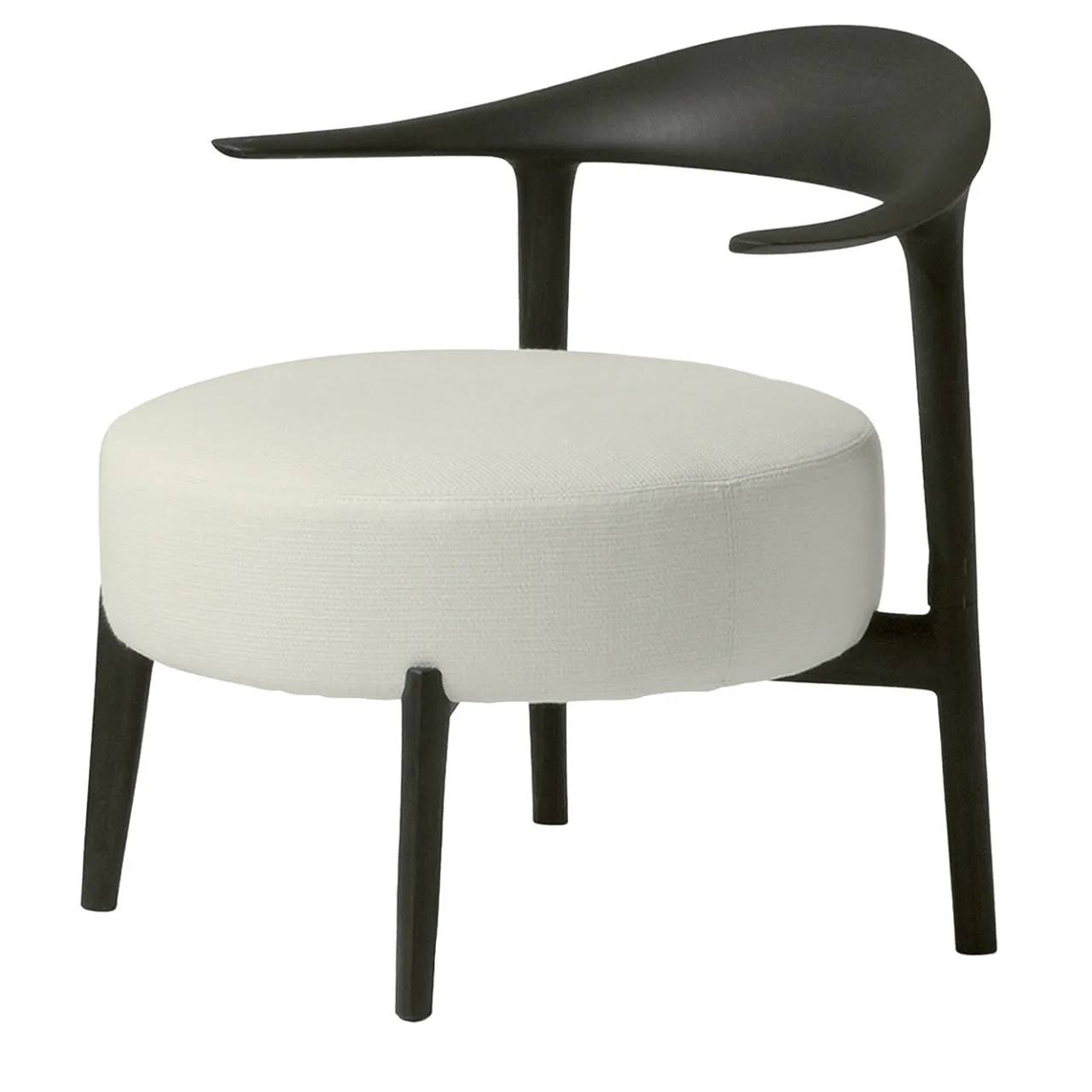 Sofisticata ed elegante nella sua forma bassa e arrotondata dallo stile unico, questa poltrona lounge in bianco e nero è un pezzo di design iconico e senza tempo che completa un ambiente contemporaneo. Realizzata a mano in legno di frassino, è rifinita in una tonalità antracite disponibile anche in altre tonalità di grigio e marrone. Morbidamente imbottita con schiuma poliuretanica flessibile e multidensità, è rivestita in fibra e rivestita in tessuto o pelle a scelta.