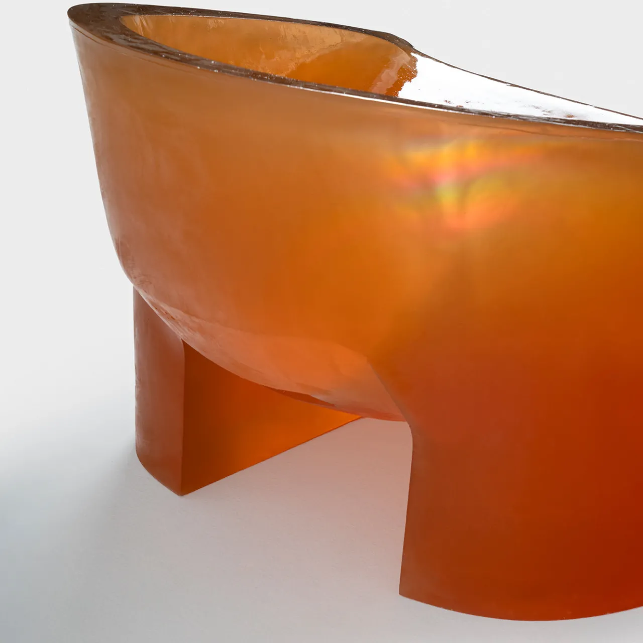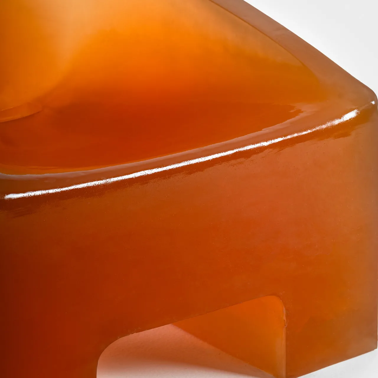 Questa sedia scultorea fonde forme organiche e suggestioni industriali, ispirandosi al contrasto tra la velocità meccanica delle automobili e il movimento lento e sinuoso di una chiocciola. Il design esprime una dualità tattile, con una silhouette morbida e arrotondata che si innesta su una base solida, offrendo al tempo stesso stabilità funzionale e fascino visivo. La vivace tonalità arancione ne amplifica la qualità scultorea, trasformandola in un elemento distintivo per gli interni contemporanei. La sedia fa parte della collezione RUBBERWORKS di Rich Aybar.