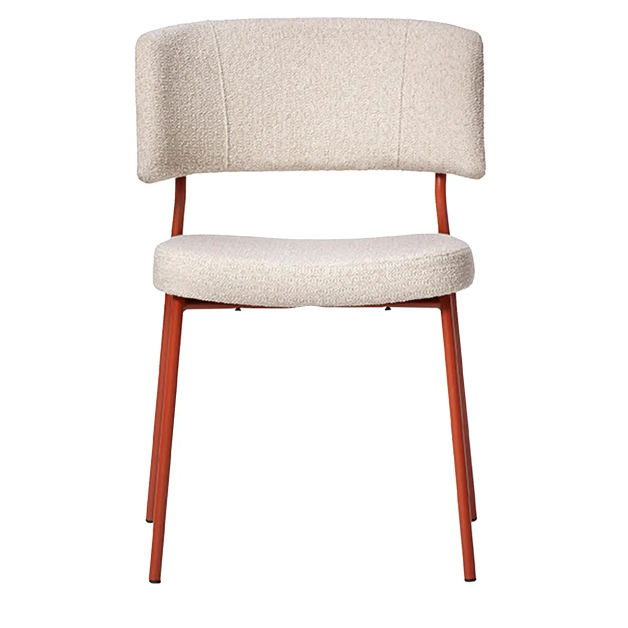 Progettata all’insegna della solidità e dell’ergonomia, senza mai rinunciare all’eleganza, questa sedia è un complemento raffinato per interni privati e contract. Il tessuto beige di prima qualità (cat. E Axium FR 01 Kobe) conferisce un’allure sartoriale alla seduta imbottita e allo schienale avvolgente, che completano la robusta ma leggera struttura in tubolare metallico proposta in una sofisticata finitura rosso mattone.