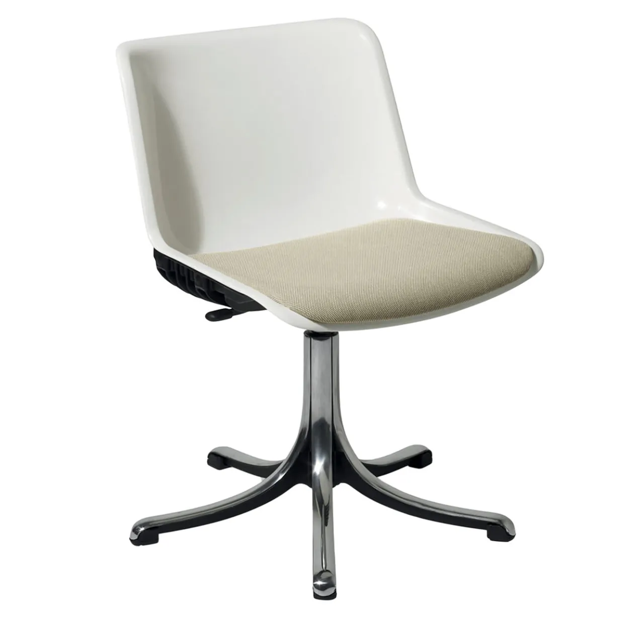 Evoluzione sobria del modello base, caratterizzato da una scocca in poliammide completamente nuda per la seduta, questa sedia si adatta a qualsiasi tipo di contesto professionale offrendo all’utente un pizzico di comfort inaspettato. Una base a cinque razze in alluminio pressofuso sostiene il sedile regolabile in altezza, la cui scocca in poliammide bianca è dotata di un cuscino inferiore rivestito in morbido tessuto Steelcut beige per un’esperienza di seduta migliore e più rilassata.