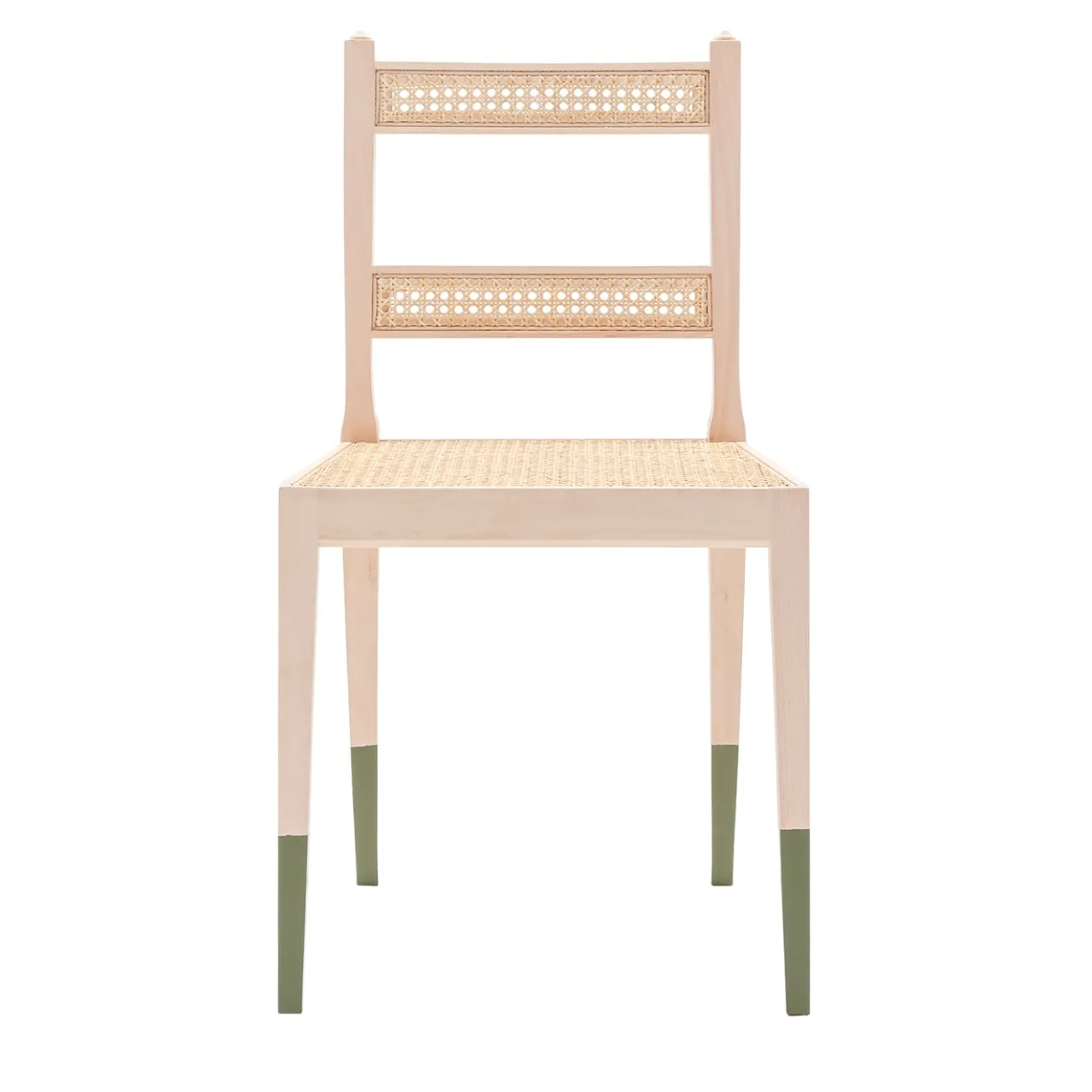 Ispirata alle antiche sedie del Nord Europa, questa sedia vanta un’estetica semplice caratterizzata da dettagli eleganti e raffinati. Interamente realizzata in faggio con una delicata tonalità naturale, è laccata verde sui piedi e vanta un sofisticato schienale aperto composto da due fasce in paglia di Vienna. Disponibile in altri colori, consultare il catalogo Artemest per le opzioni.