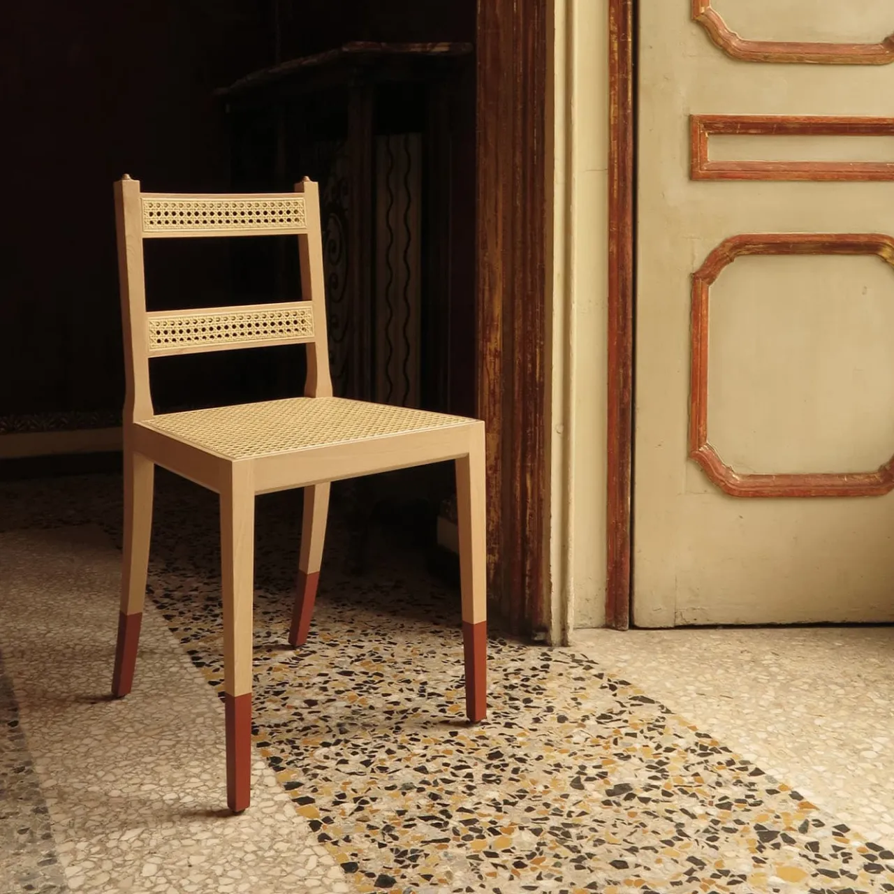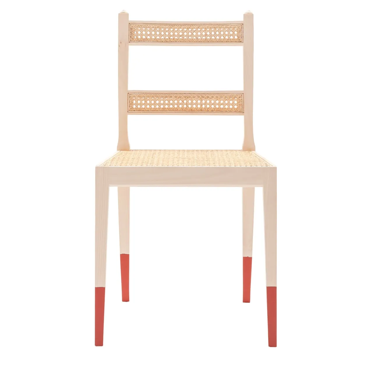 Rivisitazione contemporanea di antiche sedie del Nord Europa, la North Chair vanta un’estetica semplice contraddistinta da dettagli sofisticati. Realizzata a mano in legno di faggio rifinito in una delicata tonalità naturale, presenta una vivace laccatura rossa che segna la metà inferiore dei piedi e un elegante schienale aperto composto da due fasce di paglia di Vienna. Disponibile in altri colori, consultare il catalogo Artemest per le opzioni.