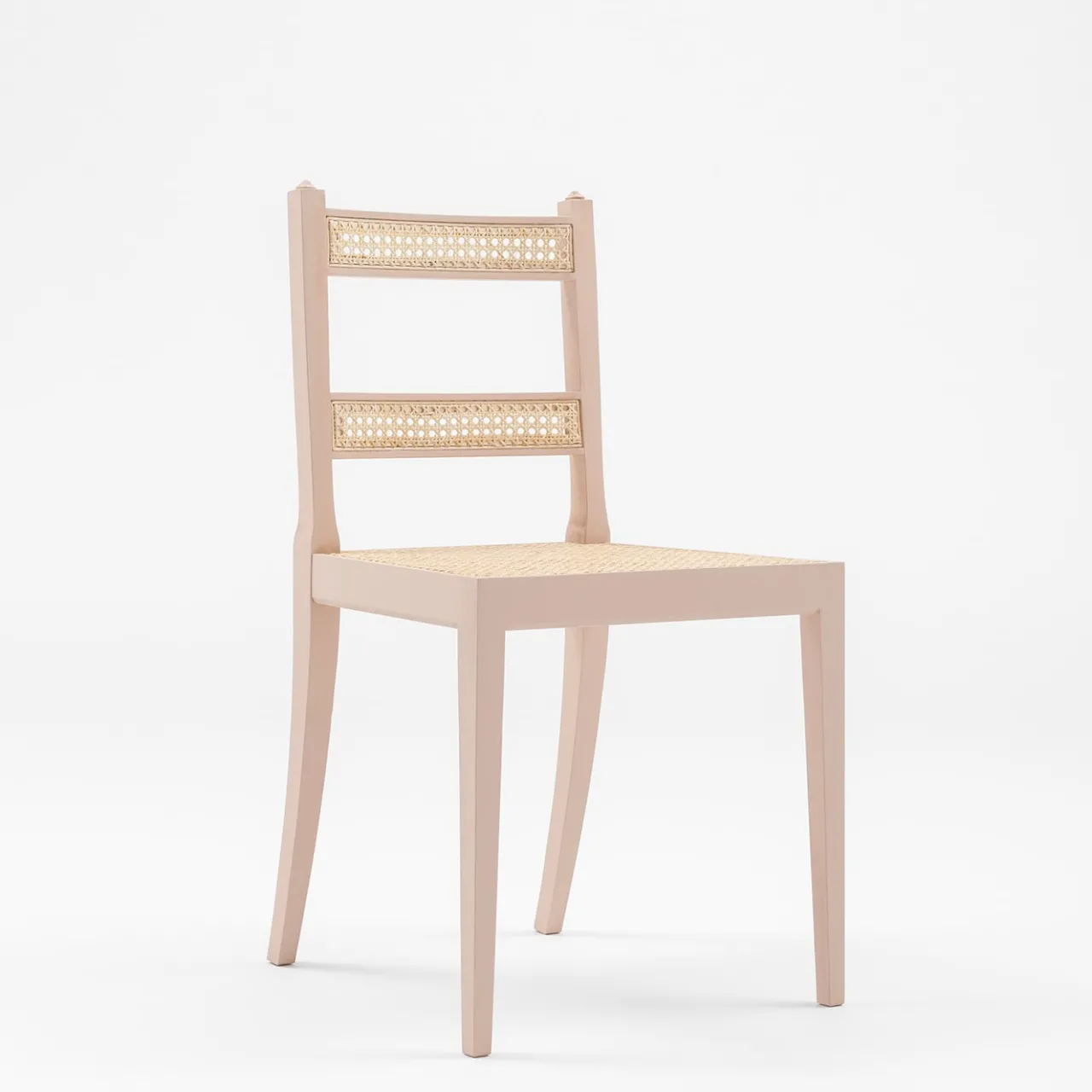 Questa sedia, che colpisce per la sua semplicità, vanta linee pulite ed eleganti e si ispira alle antiche sedie del Nord Europa. Realizzata a mano in legno di faggio rifinito in una delicata tonalità rosa, presenta un sofisticato schienale aperto composto da due fasce di paglia di Vienna, in tinta con il materiale della seduta. Disponibile in altri colori, consultare il catalogo Artemest per le opzioni.