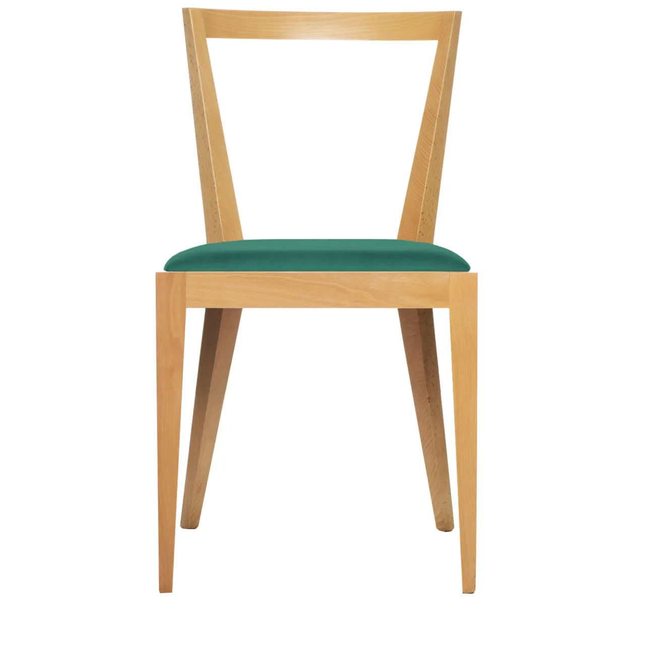 Splendido design di , uno dei massimi interpreti dello stile italiano del XX secolo, questa sedia sarà una preziosa aggiunta a un arredamento moderno o d’ispirazione vintage, intorno a un tavolo da pranzo, come pezzo d’accento in un ingresso o davanti a una scrivania in uno studio privato. La sua struttura in legno con finitura naturale ha una silhouette minimalista con gambe posteriori inclinate che si specchiano nello schienale aperto a trapezio. La seduta è rivestita in tessuto verde per un tocco di colore vivace.