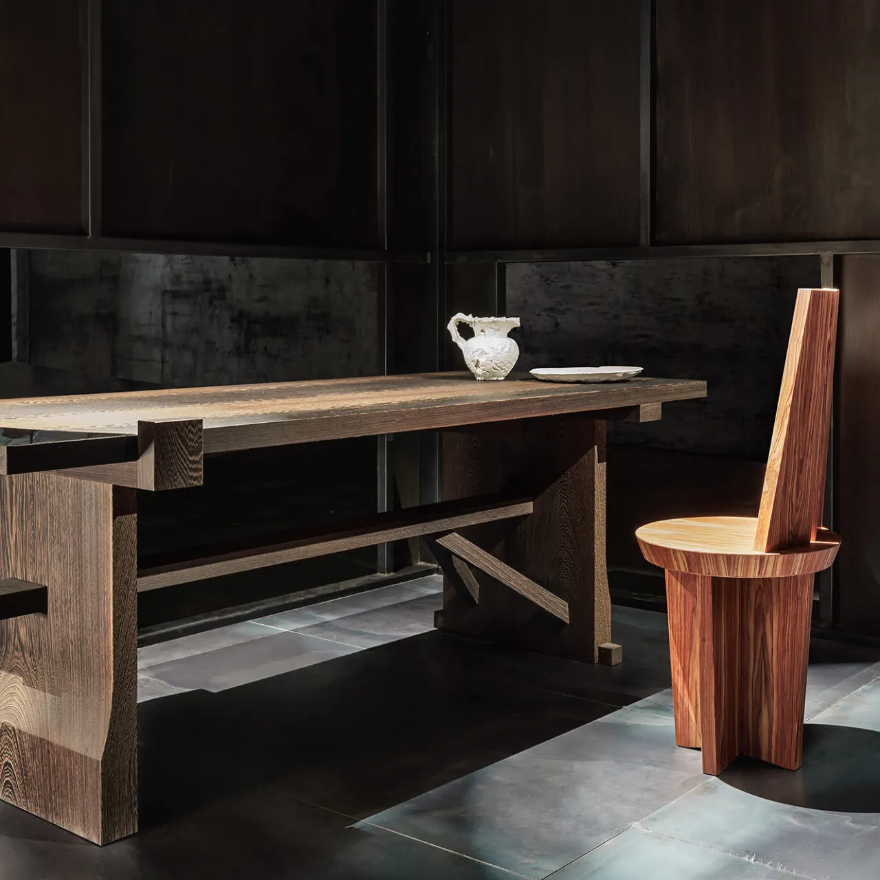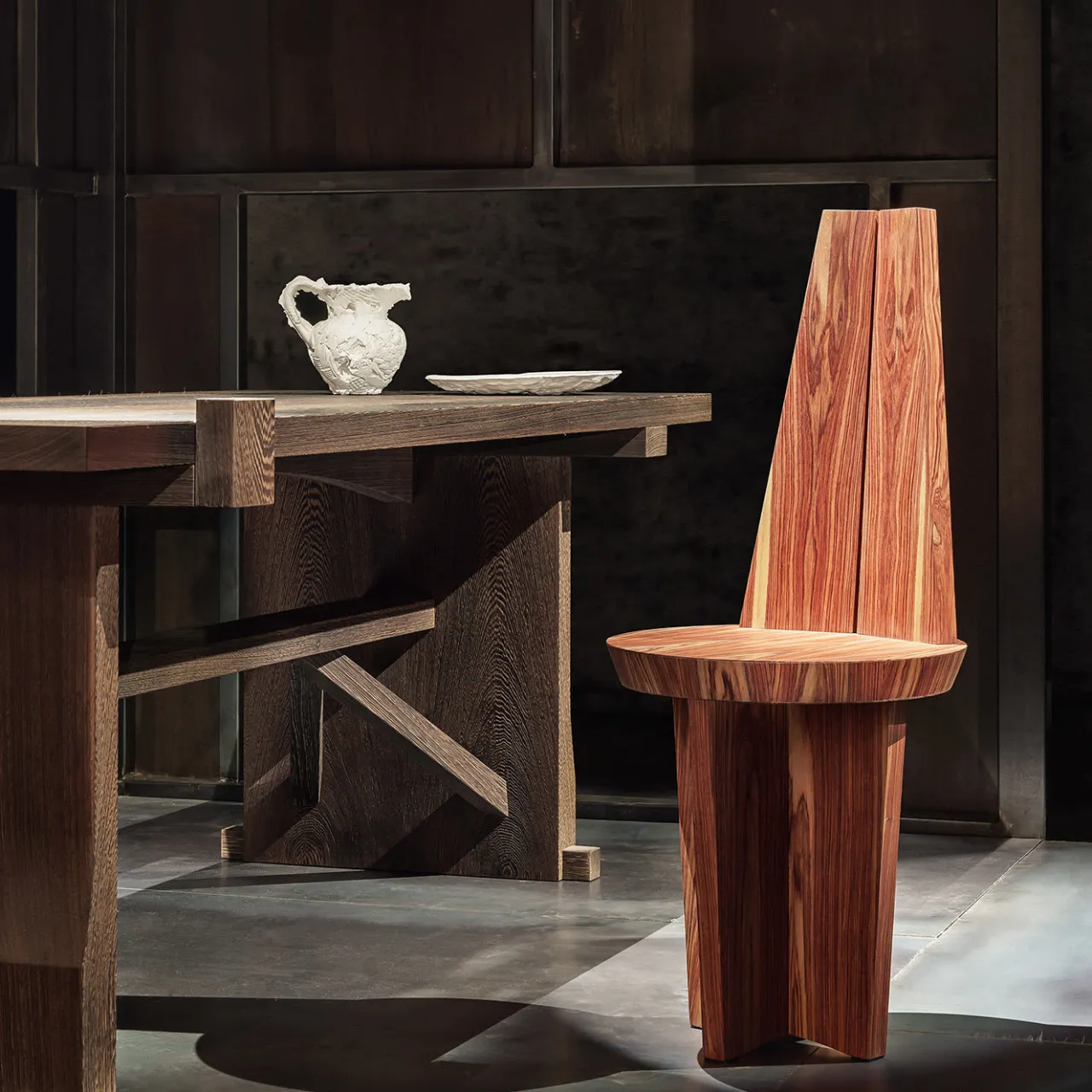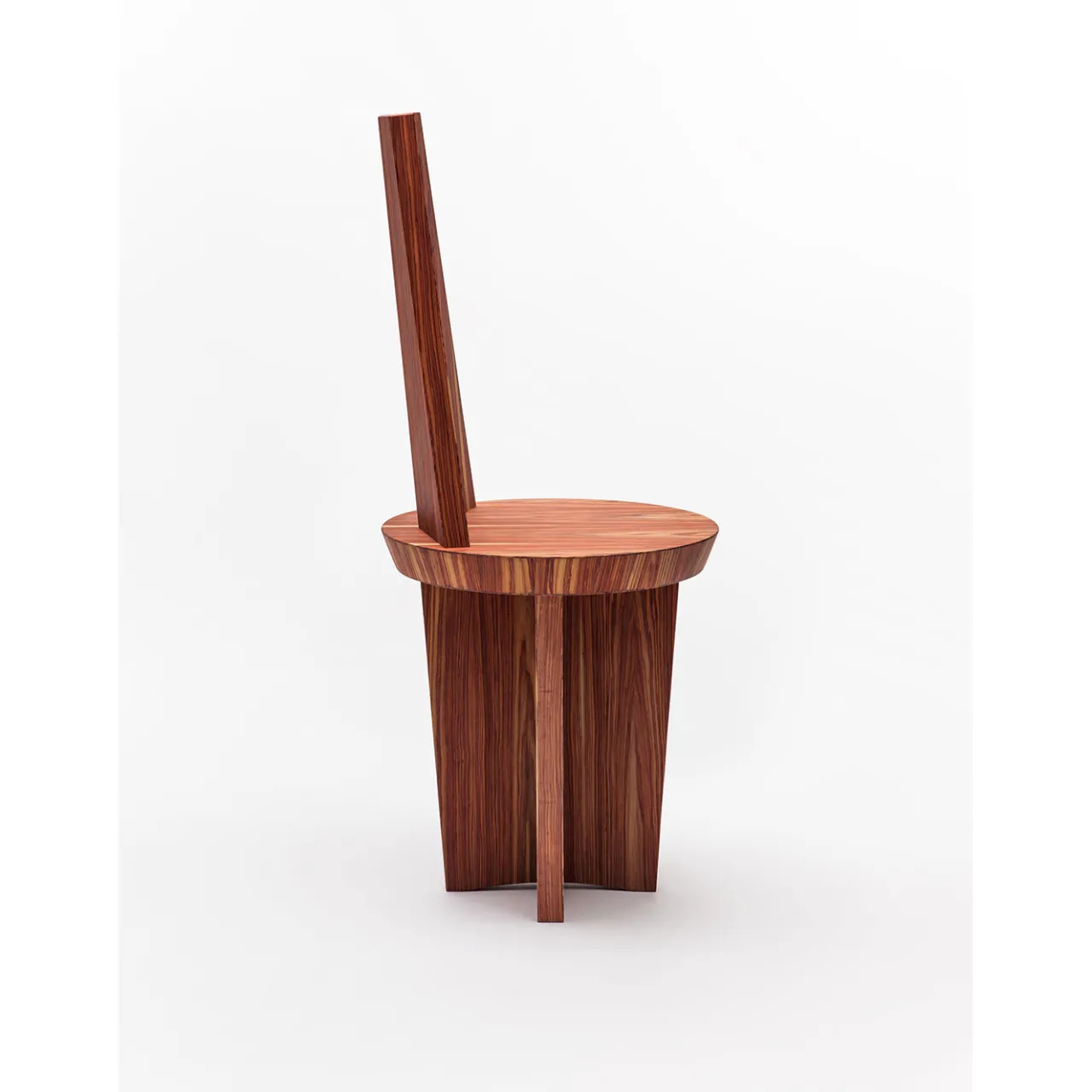 Parte di una collezione che cerca di ricreare gli oggetti intimi degli ambienti tradizionali come riflesso della società italiana, questa sedia prende il nome dalle parole italiane per “sedia povera”, grazie al suo design semplice ma efficace. Esaltando il fascino naturale del palissandro, il pezzo presenta uno schienale alto che poggia su una seduta rotonda e gambe incrociate.