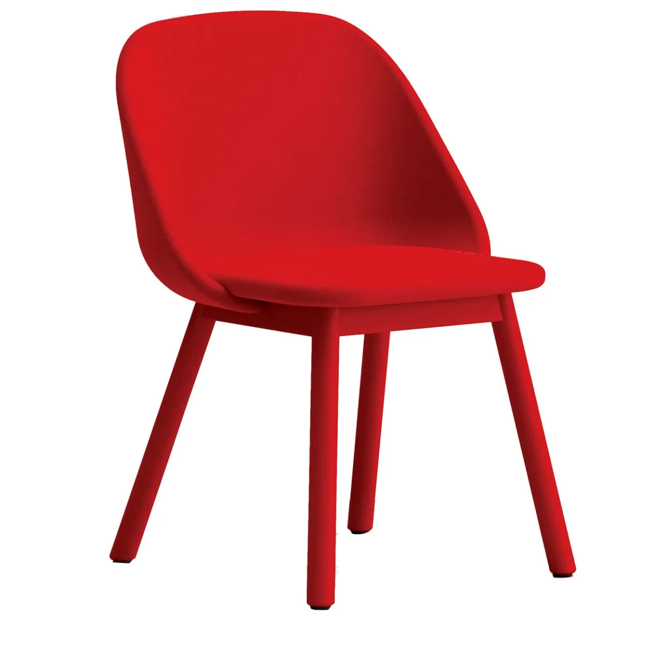 Prosperità e rotondità contraddistinguono il design elegante di questa sedia glamour. La vivacità del suo carattere si sposa con le tonalità, con un rosso acceso (RAL 3020) scelto per la tinta della struttura in faggio massiccio che ben si armonizza con il tessuto con cui è rivestita la seduta leggermente avvolgente. La forma tornita delle gambe ammorbidisce ulteriormente il design. La seduta è alta 47 cm.