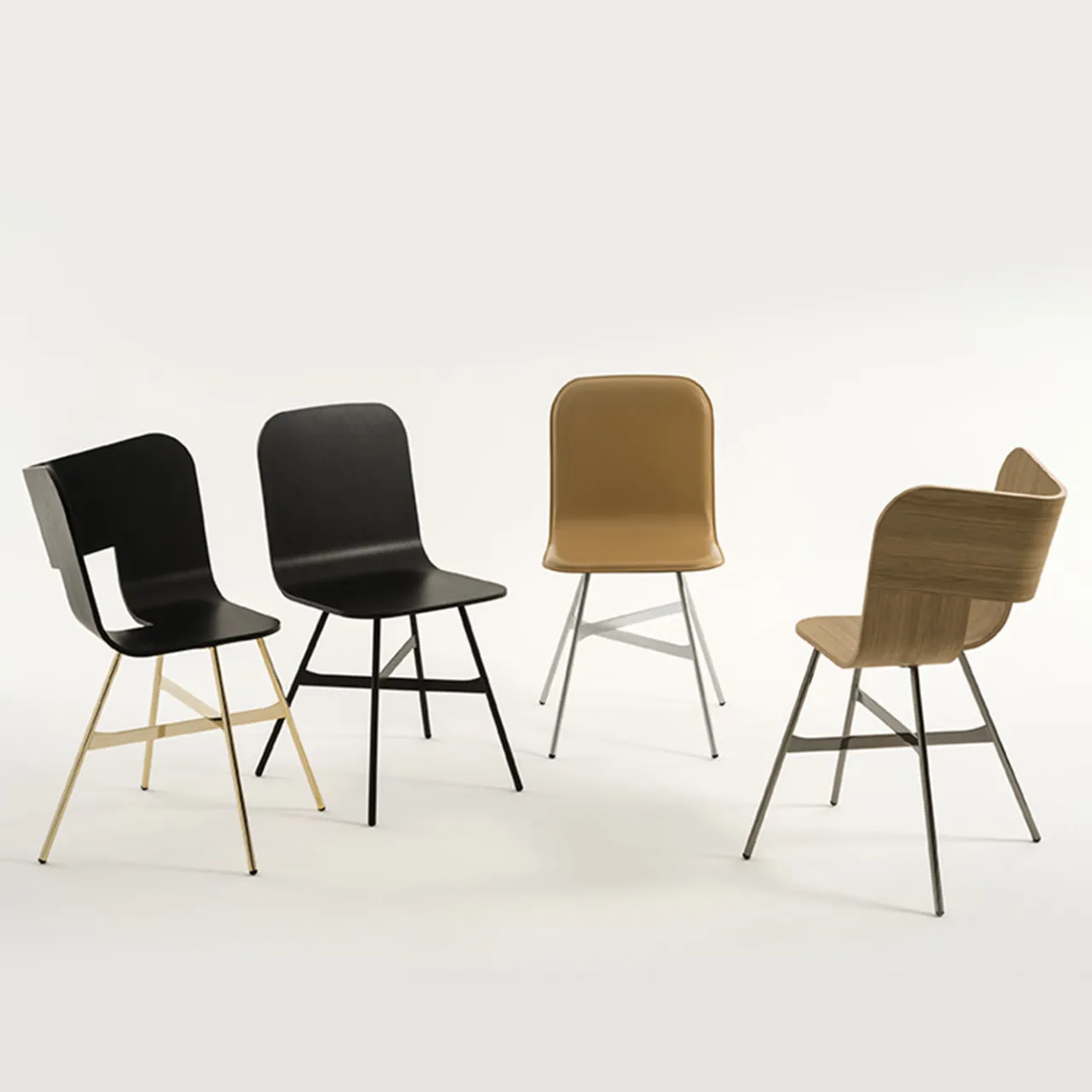 Questa sedia moderna è disponibile in diverse finiture per offrire una varietà di sedute che possono essere combinate tra loro creando effetti dinamici. La scocca è in rovere multistrato ed è curvata per abbracciare comodamente l’ospite. La struttura è in metallo con finitura dorata che completa la laccatura nera del legno. Posizionata intorno a un tavolo o abbinata a un’altra per ottenere la forma di una panca, questa sedia sarà un’elegante aggiunta a un arredamento moderno.