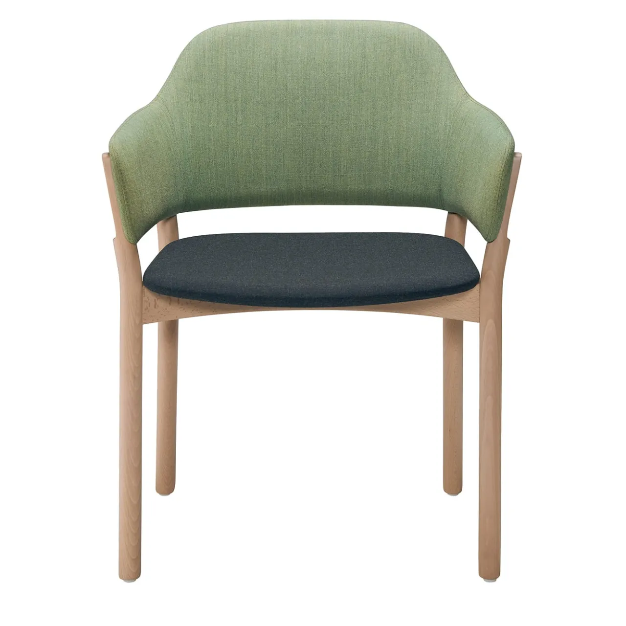 Gap 497 è una sedia in legno di faggio. Il sedile e lo schienale sono rivestiti in tessuto. Il tessuto nella foto: Extra 02, Remix 3. Il sedile può essere disponibile anche in pelle; per maggiori informazioni, contattare il concierge.