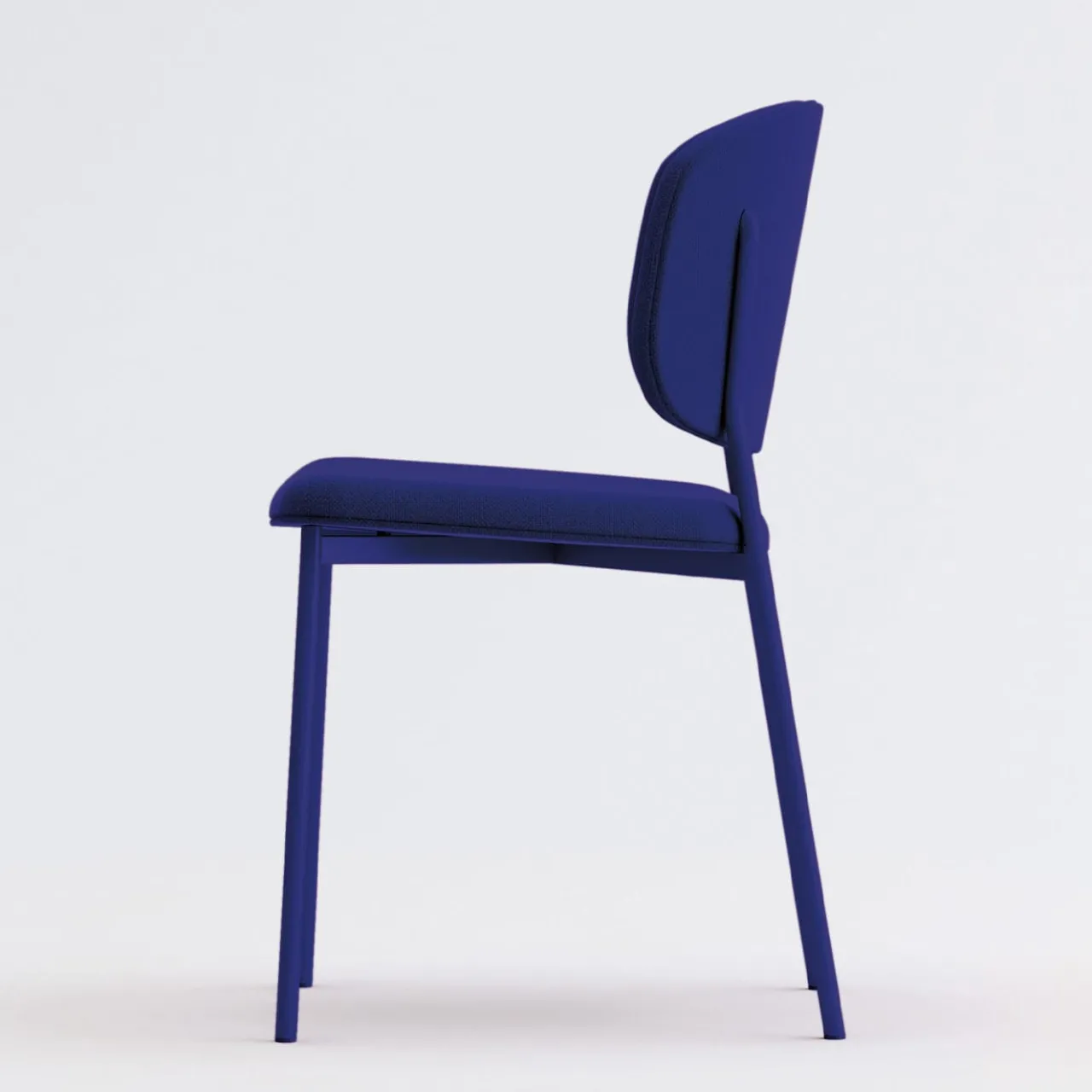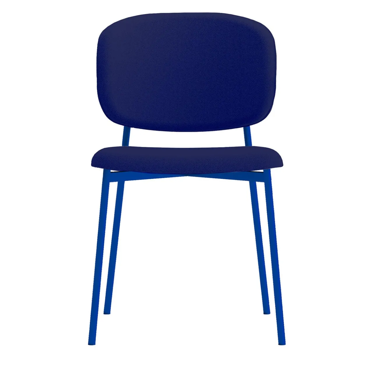 Gli interni contemporanei che necessitano di un tocco di colore saranno deliziosamente completati da questa sedia, qui proposta in una vibrante tonalità di blu. Il rigore dell’essenziale struttura in tondino d’acciaio rifinito in blu oltremare (RAL 5002) viene ammorbidito dalle curve che delineano sia la seduta alta 49 cm sia lo schienale, elementi la cui imbottitura e il cui rivestimento coordinato (Flamenco 6032) assicurano un comfort inaspettato.