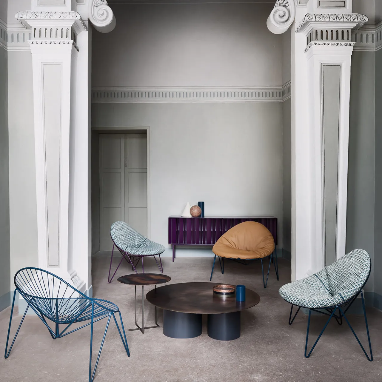 Questa poltrona lounge, un pezzo di grande effetto, vanta un’allure contemporanea caratterizzata da linee geometriche e scultoree. Le gambe a zig-zag sono meticolosamente realizzate in tubolare d’acciaio e sostengono la seduta (37,5 cm di altezza) e lo schienale in acciaio rinforzato stampato. Un morbido cuscino imbottito con schiuma Dry-Fly resistente all’acqua e rivestito con un tessuto sfoderabile per interni ed esterni è fissato alla struttura con dei magneti. Questa poltrona esclusiva è disponibile anche in altri colori; per le opzioni, rivolgersi al Concierge.