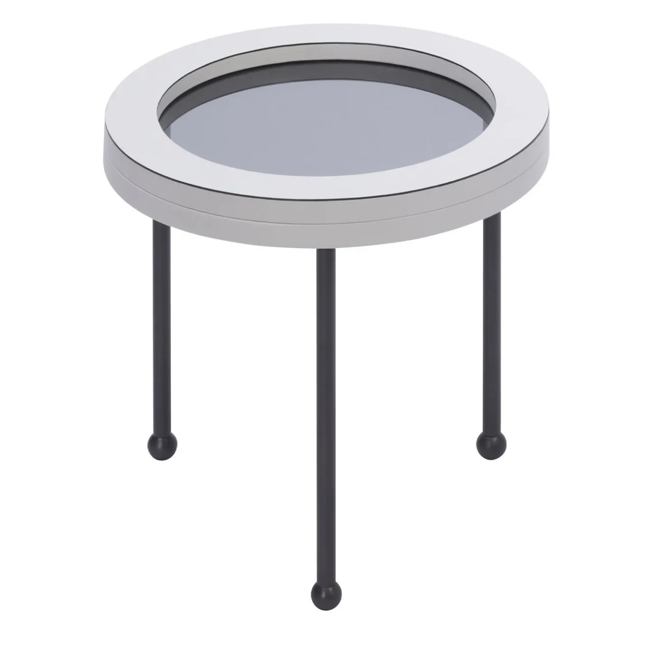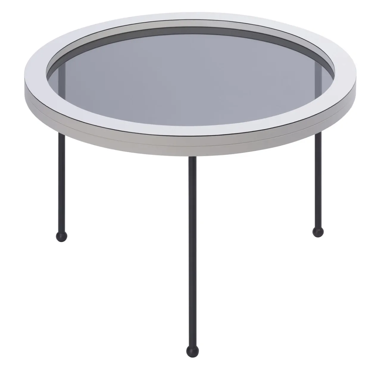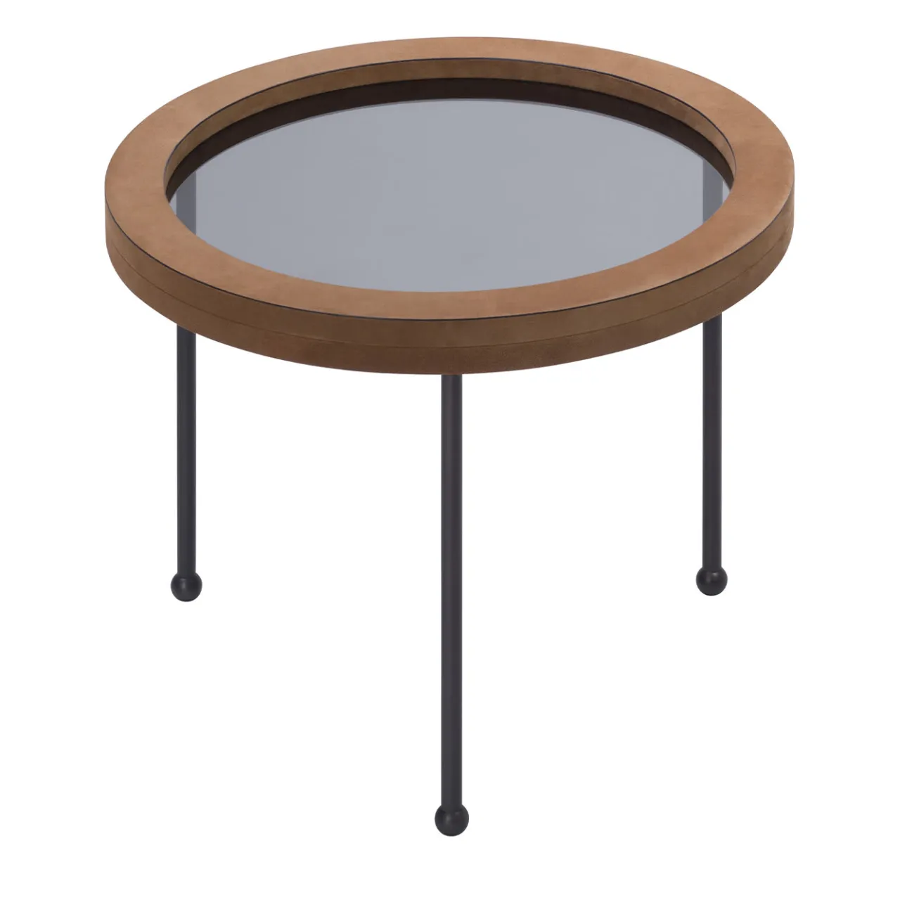 Parte della Collezione Augustus, ispirata agli oblò del famoso transatlantico italiano del 1950, questo set di tre tavolini nidificanti presenta un piano in vetro fumé incorniciato da uno spesso bordo in pelle e sostenuto da tre gambe in bronzo con ghiere sferiche. I tavoli misurano (in cm): Ø 35 x H 35,5, Ø 49,5 x H 41,5, Ø 66 x H 48. La pelle è disponibile in nappa, camoscio e vitello stampato.