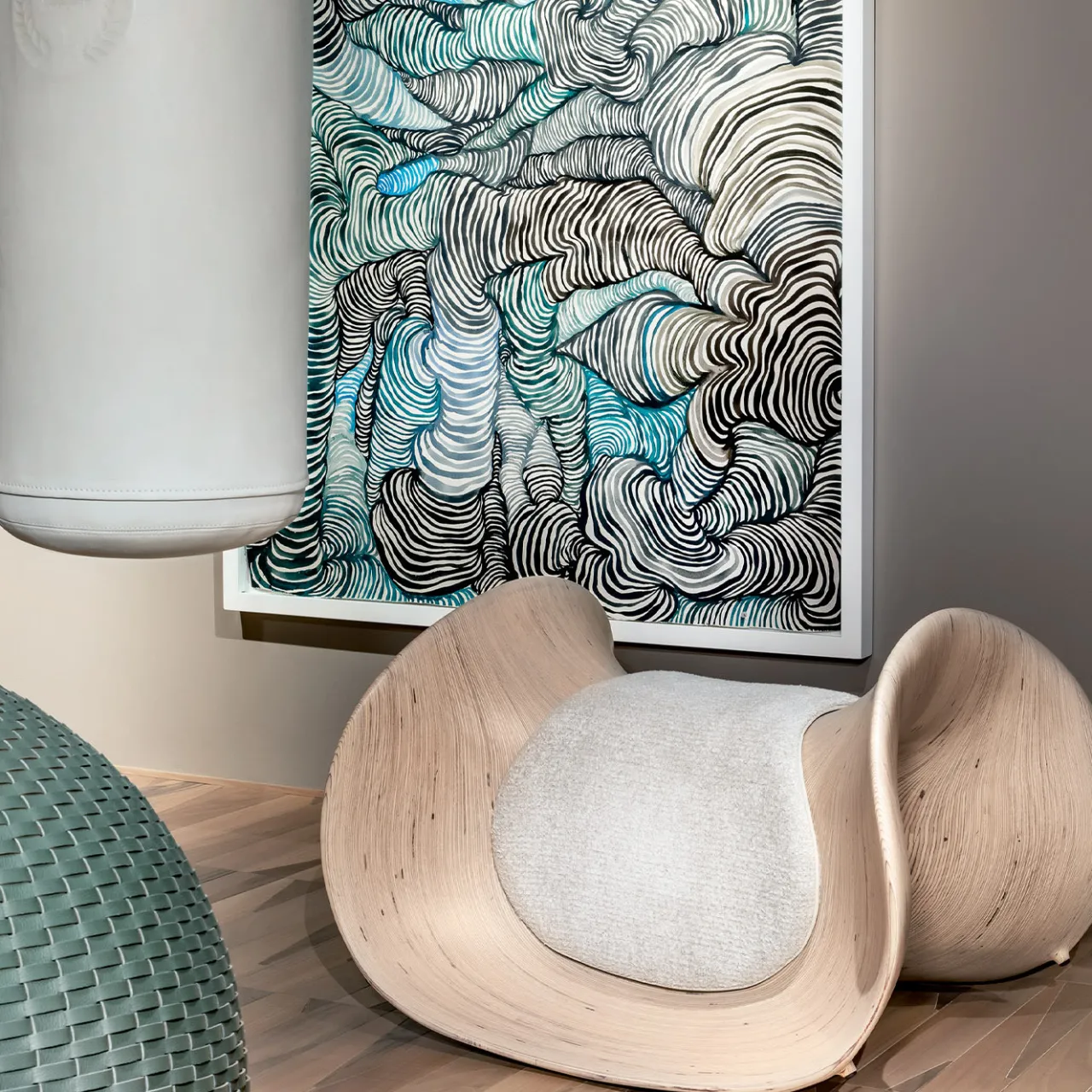 Un cavallo a dondolo si trasforma in una sedia a dondolo in questo design iconico, una soluzione di seduta simile a una sella che può essere girata e utilizzata per soddisfare le diverse esigenze. Le sue forme sinuose e avvolgenti offrono un comfort eccellente. È realizzata a mano in multistrato di betulla e può essere completata con una seduta imbottita in poliuretano rivestita in pelle o in tessuto. Per ulteriori dettagli e personalizzazioni, rivolgersi al Concierge.
