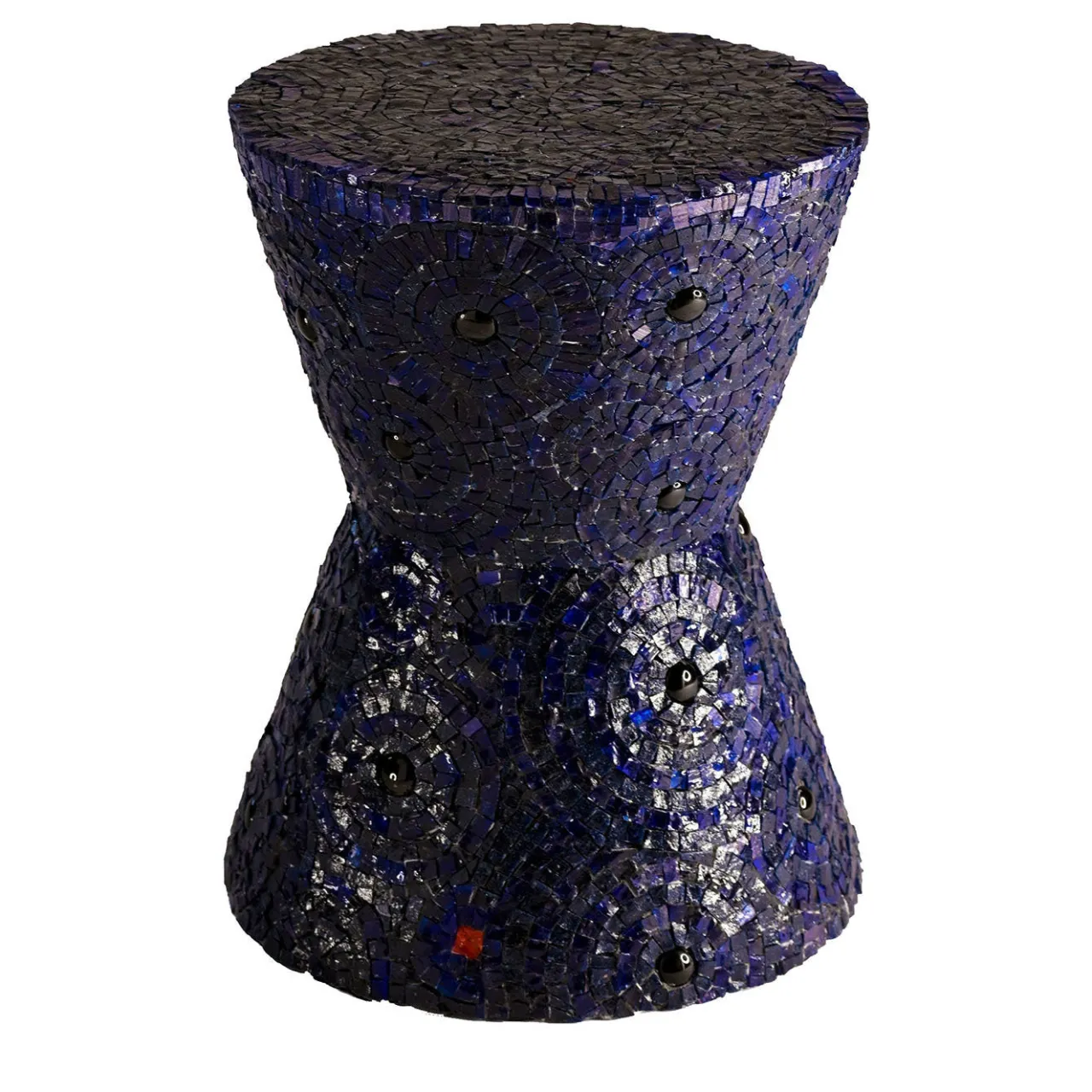 Stupefacente nella sua complessità, questo magnifico sgabello sarà un pezzo iconico come tavolino o come oggetto decorativo scultoreo. Singolare ed eccezionalmente elegante, si ispira alla Notte Stellata di Van Gogh nelle sue tonalità scure e lucenti. Composto da una base in ceramica, è interamente rivestito da 7000 piastrelle tagliate a mano e abilmente applicate da maestri artigiani.