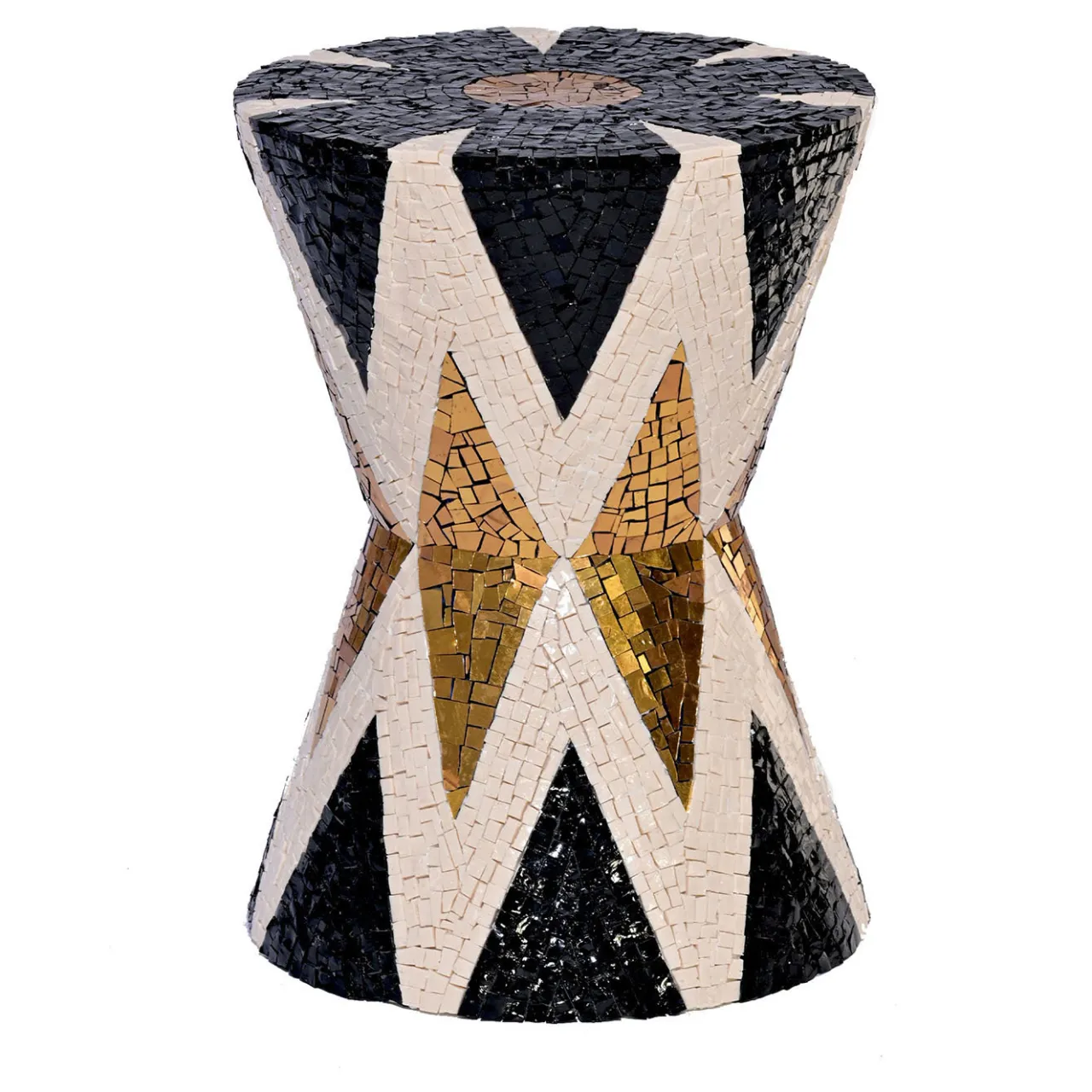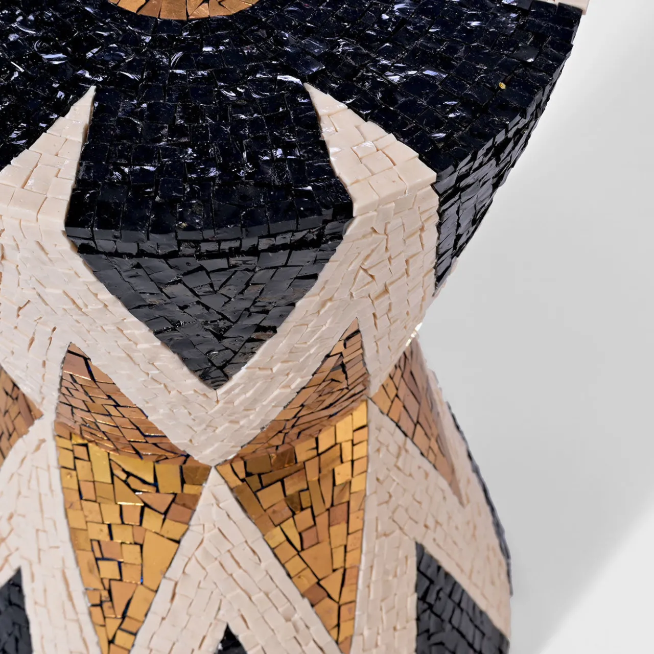 Un design feroce e maestoso che sarà un audace punto focale in un interno contemporaneo, questo sgabello scultoreo si ispira ai motivi degli sgabelli dei leoni del circo e al leone alato dell’iconica Piazza San Marco a Venezia. Abilmente realizzato a mano con 7000 tessere di mosaico in nero, beige e oro 24 carati tagliate a mano presso la fornace Orsoni di Venezia.