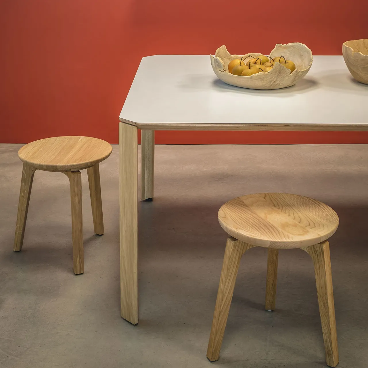 Elegante nella sua semplicità, questo sgabello basso è caratterizzato da una finitura in legno naturale che mostra venature eleganti e affascinanti. Interpretazione moderna delle sedute in legno tradizionali e rustiche, è interamente realizzato in frassino massiccio, caratterizzato da una seduta intagliata e sagomata e da tre gambe montate con un sistema a incastro nascosto sul lato inferiore della seduta.