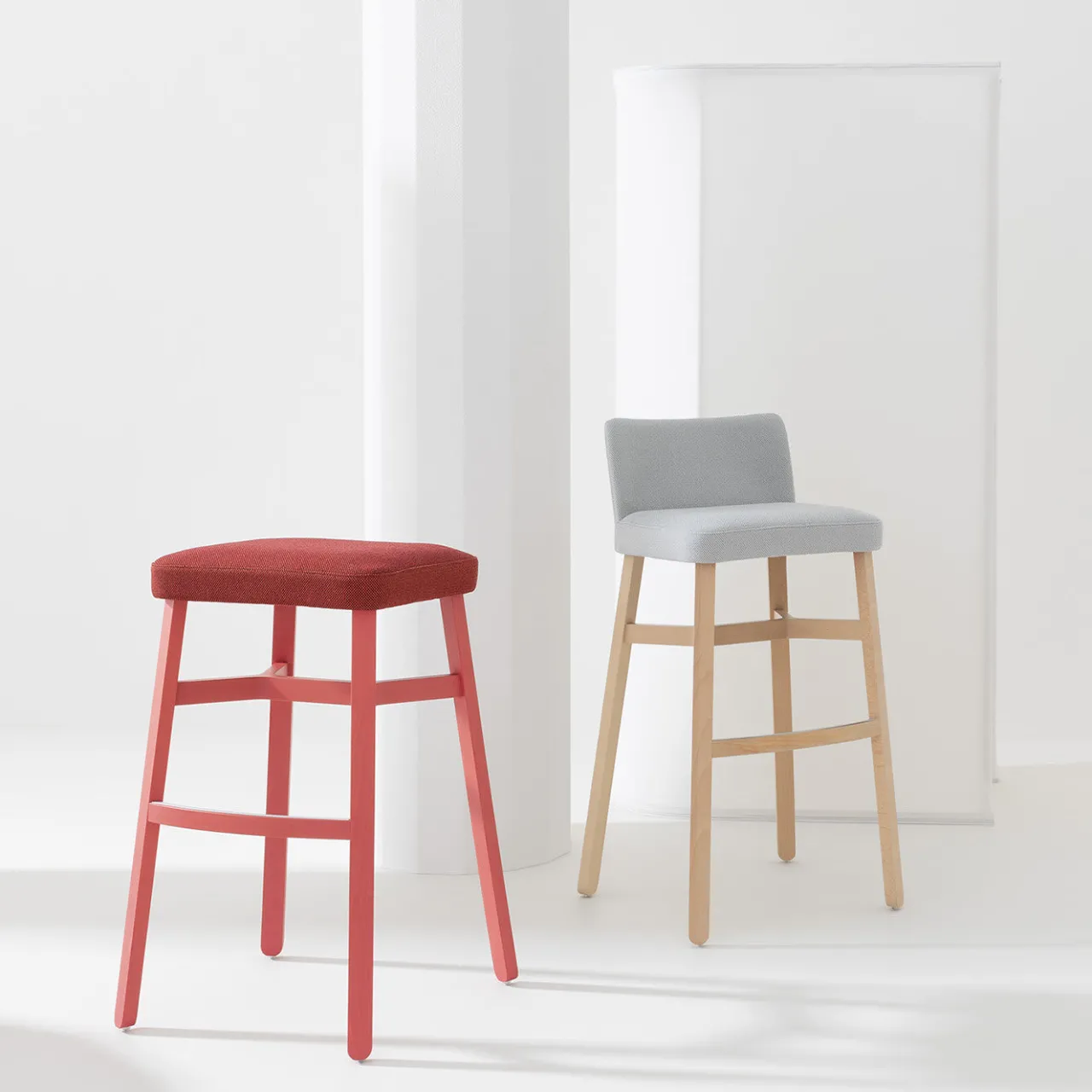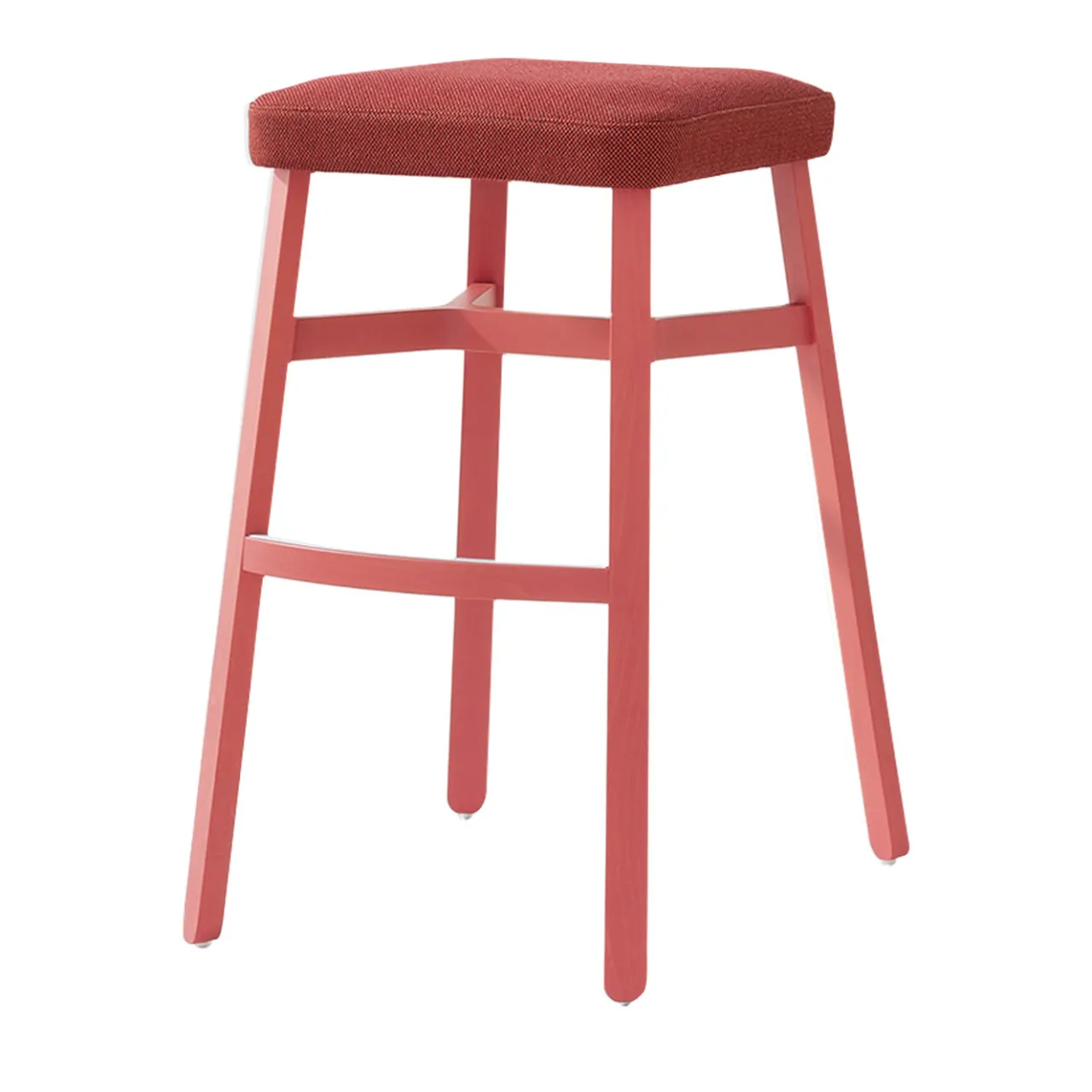Questo superbo sgabello di Emilio Nanni bilancia la vivacità di colori vibranti con un’estetica squisitamente moderna. Questo pezzo, che presenta il tratto distintivo della collezione Croissant – l’incrocio strutturale sotto la seduta -, ha una silhouette slanciata in faggio tinto di rosso, composta da quattro gambe oblique e appiattite che sostengono la seduta squadrata rivestita in tessuto rosso vivo. Su richiesta, sono disponibili le certificazioni per il settore contract e commerciale.