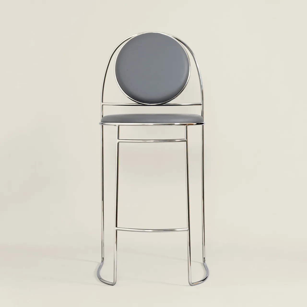 Nella Collezione Ducale, Enrico Girotti rende omaggio alla città di Venezia reinterpretando elementi del gotico veneziano. Un percorso palingenetico che fonde design e artigianato attraverso il metallo e i tessuti. Lo sgabello Ducale-BZ presenta uno schienale disegnato nello spazio con curve bezier, con uno schienale circolare sostenuto da un elemento curvo. La struttura è in acciaio massiccio sagomato, frontale aperto, con finitura cromata e rivestimento in ecopelle. Contattare il Concierge per le opzioni di personalizzazione.