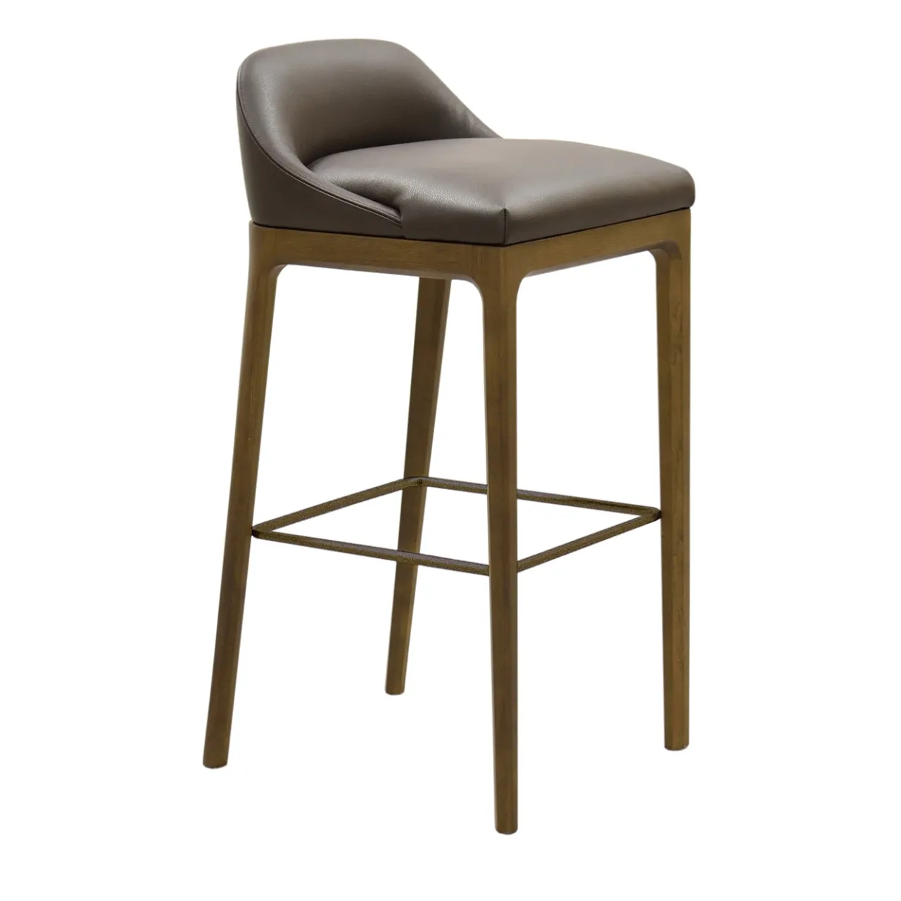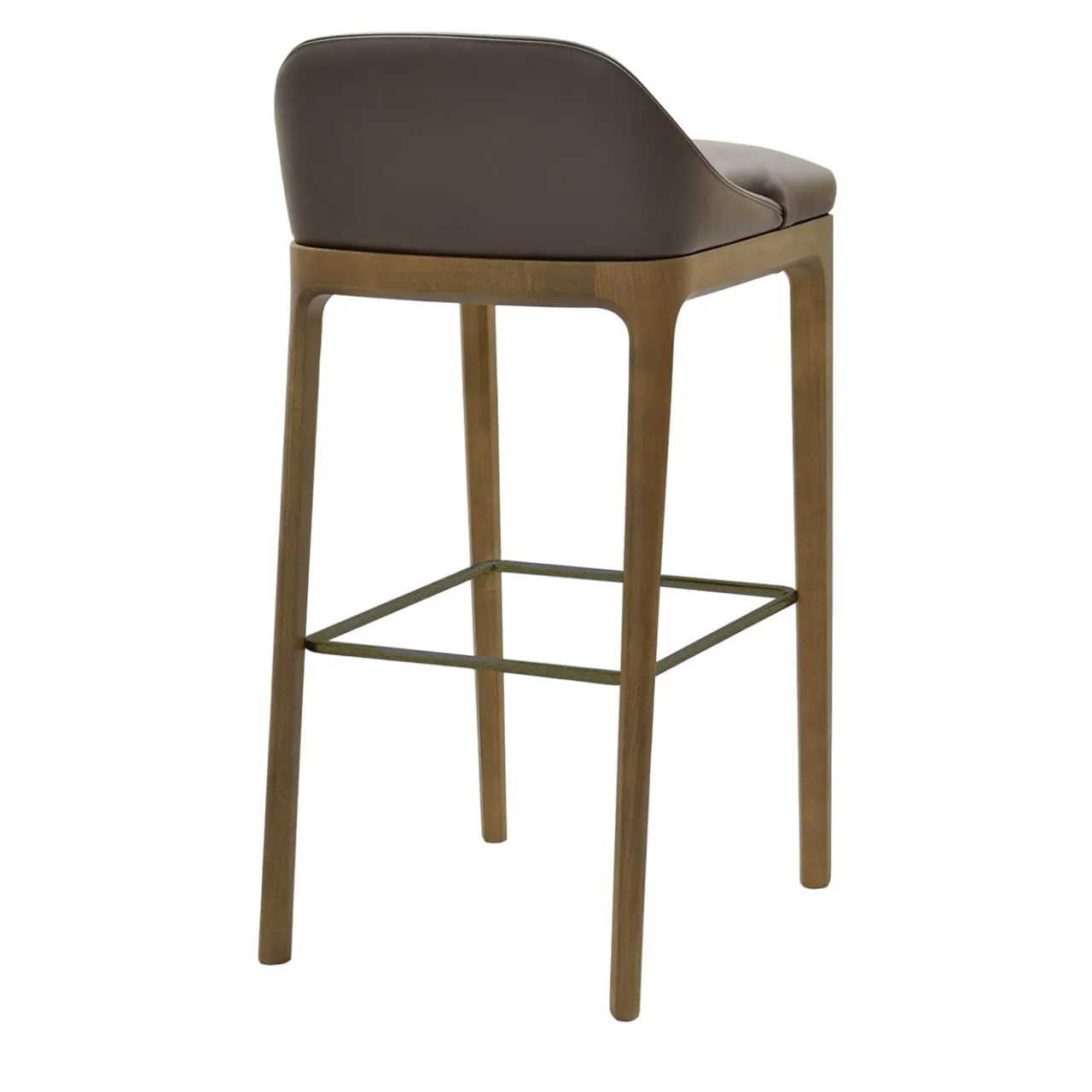 Questo sgabello da bar lucido in frassino unisce un’estetica moderna a un elevato comfort, garantito dalla sua seduta imbottita. Caratterizzato da una silhouette armoniosa, questo esclusivo sgabello poggia su quattro gambe dritte collegate da un poggiapiedi in metallo. Il suo design sofisticato lo rende adatto sia ad ambienti commerciali che residenziali. Il peso totale è di 15 kg. Su richiesta sono disponibili le certificazioni per il settore contract e commerciale. Disegnato da Libero Rutilo.