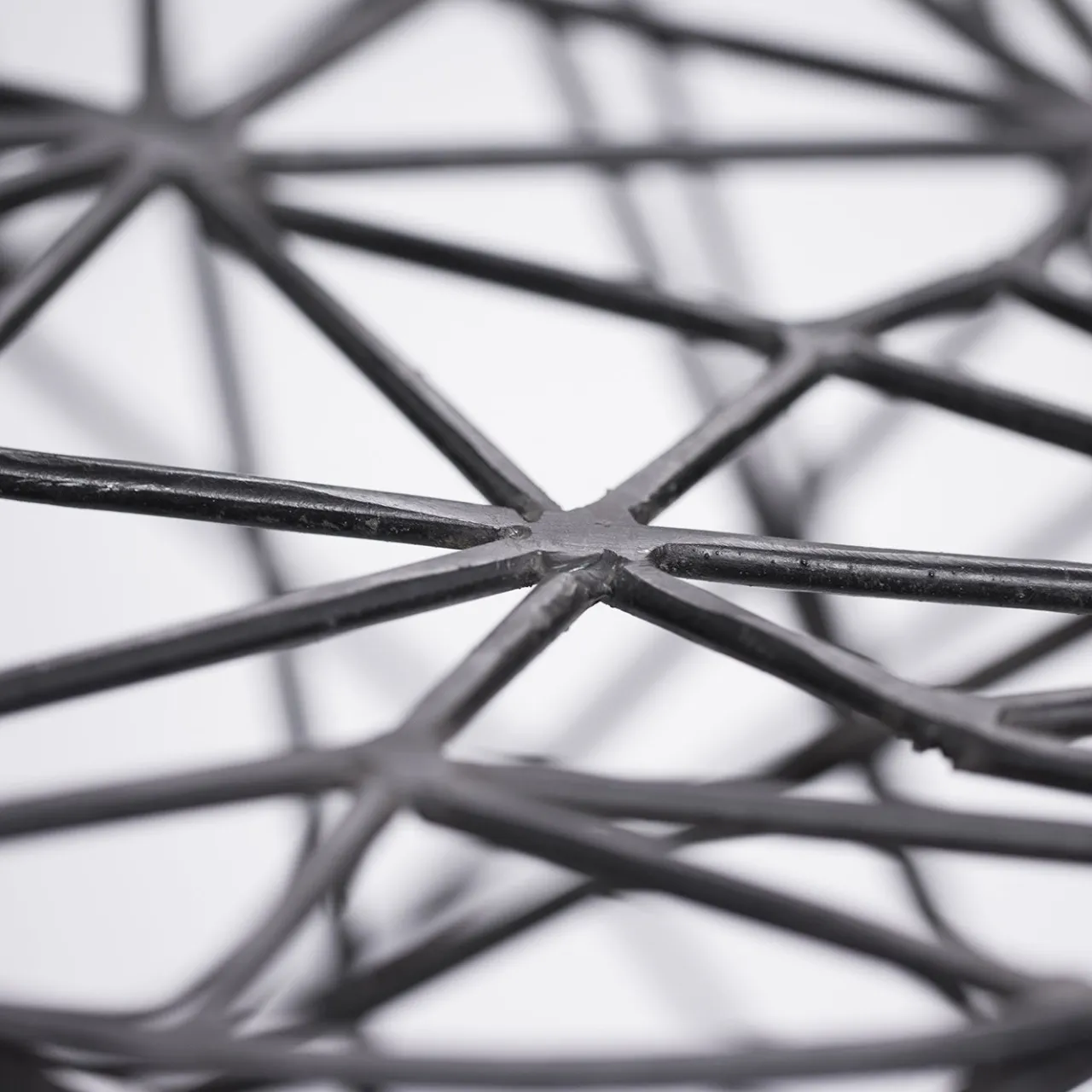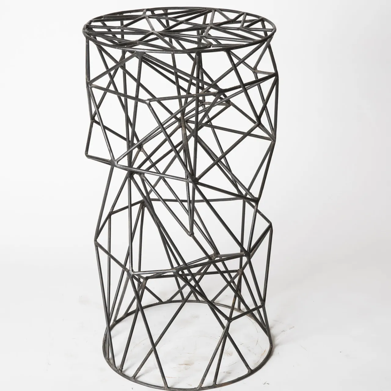 Sgabello scolpito in filo di ferro temperato di Sciortino. La forma frastagliata e imprevedibile è accattivante e la finitura verniciata in nero conferisce al pezzo una presenza decisa.