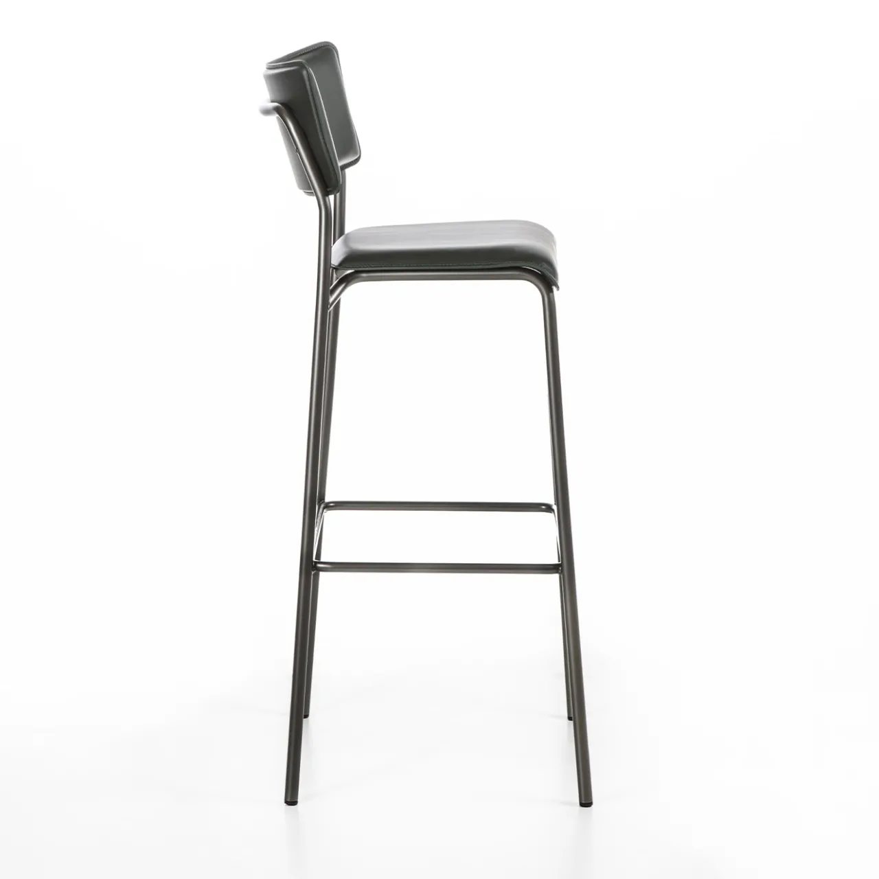 Sgabello per interni con struttura tubolare e sedile e schienale rivestiti in pelle.Tutti i componenti sono disponibili in altri colori. Per maggiori informazioni, contattare il concierge.