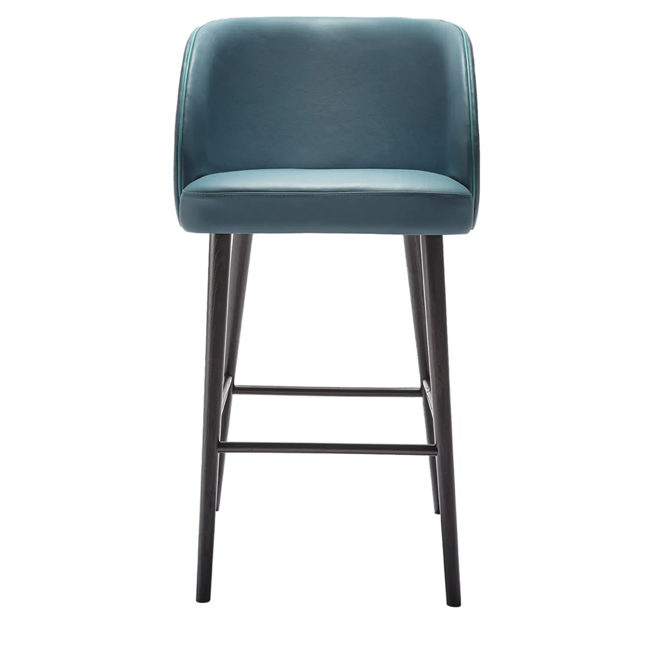 Fa parte della collezione Kyoto, caratterizzata da forme arrotondate e ben proporzionate. La struttura in faggio vanta uno schienale ben curvo e un sedile generoso che poggia su lunghe e affusolate gambe con finitura nera e poggiapiedi bassi. Rivestita in pelle azzurra, il rivestimento è disponibile anche in tessuto e in un’ampia gamma di colori a catalogo; per maggiori dettagli, contattare il Concierge.