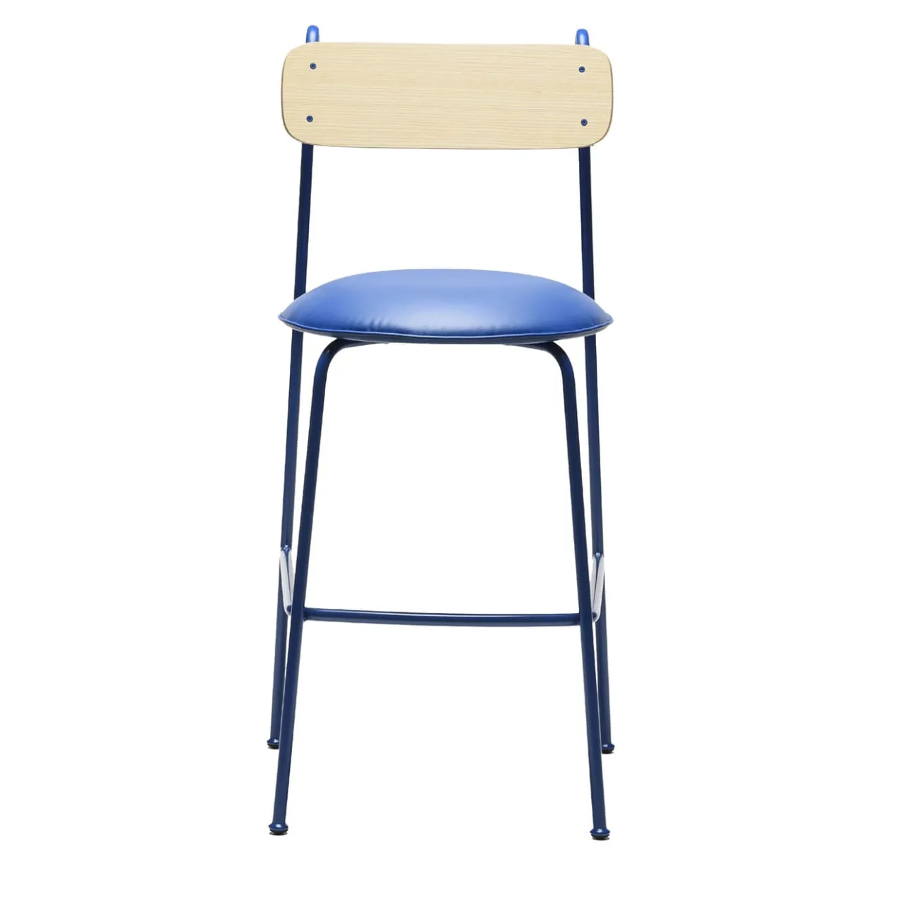 Struttura in metallo verniciato a polvere blu con schienale impiallacciato in frassino naturale lucido e seduta imbottita in ecopelle blu. Lena fonde in modo splendido il minimalismo giocoso con l’influenza del design grafico, creando un’armonia accattivante tra stile e praticità. L’elegante struttura in metallo contrasta con il morbido cuscino curvo della seduta, mostrando un sapiente equilibrio tra forma e comfort.