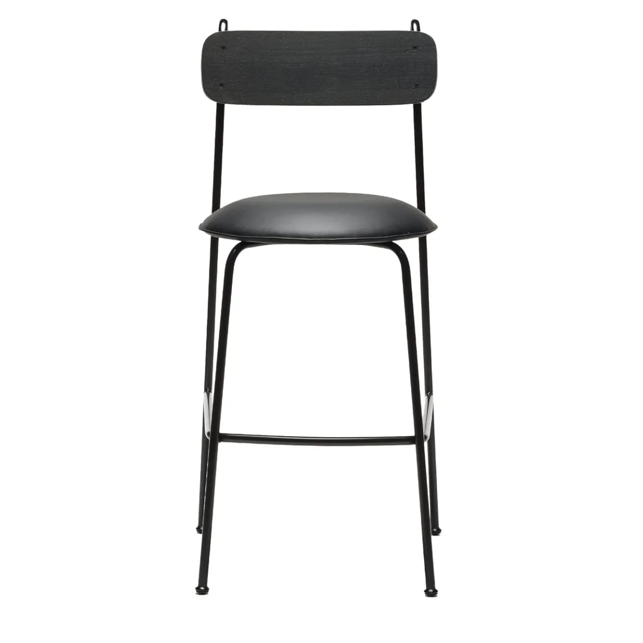 Struttura in metallo verniciato a polvere nera con schienale impiallacciato in frassino naturale lucido e seduta imbottita in ecopelle nera. Lena fonde in modo splendido il minimalismo giocoso con l’influenza del design grafico, creando un’armonia accattivante tra stile e praticità. L’elegante struttura in metallo contrasta con la morbida seduta imbottita e ricurva, mostrando un sapiente equilibrio tra forma e comfort.