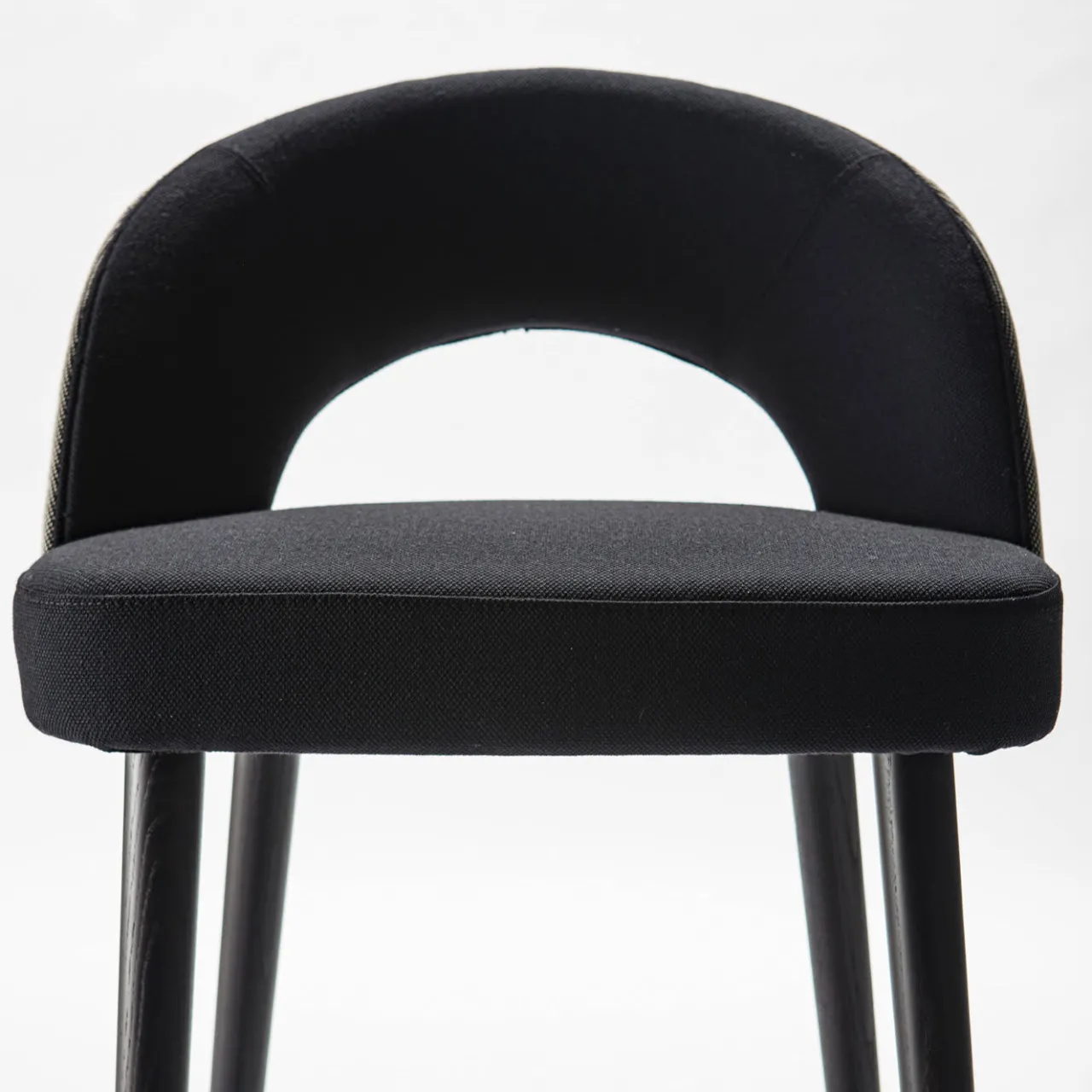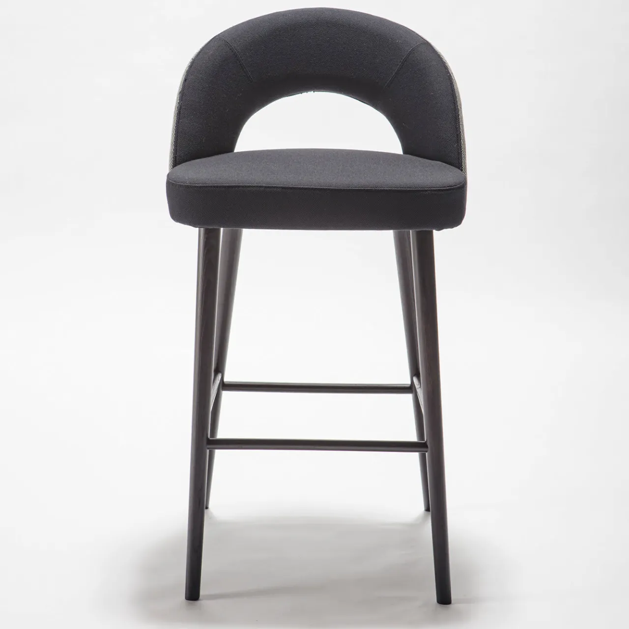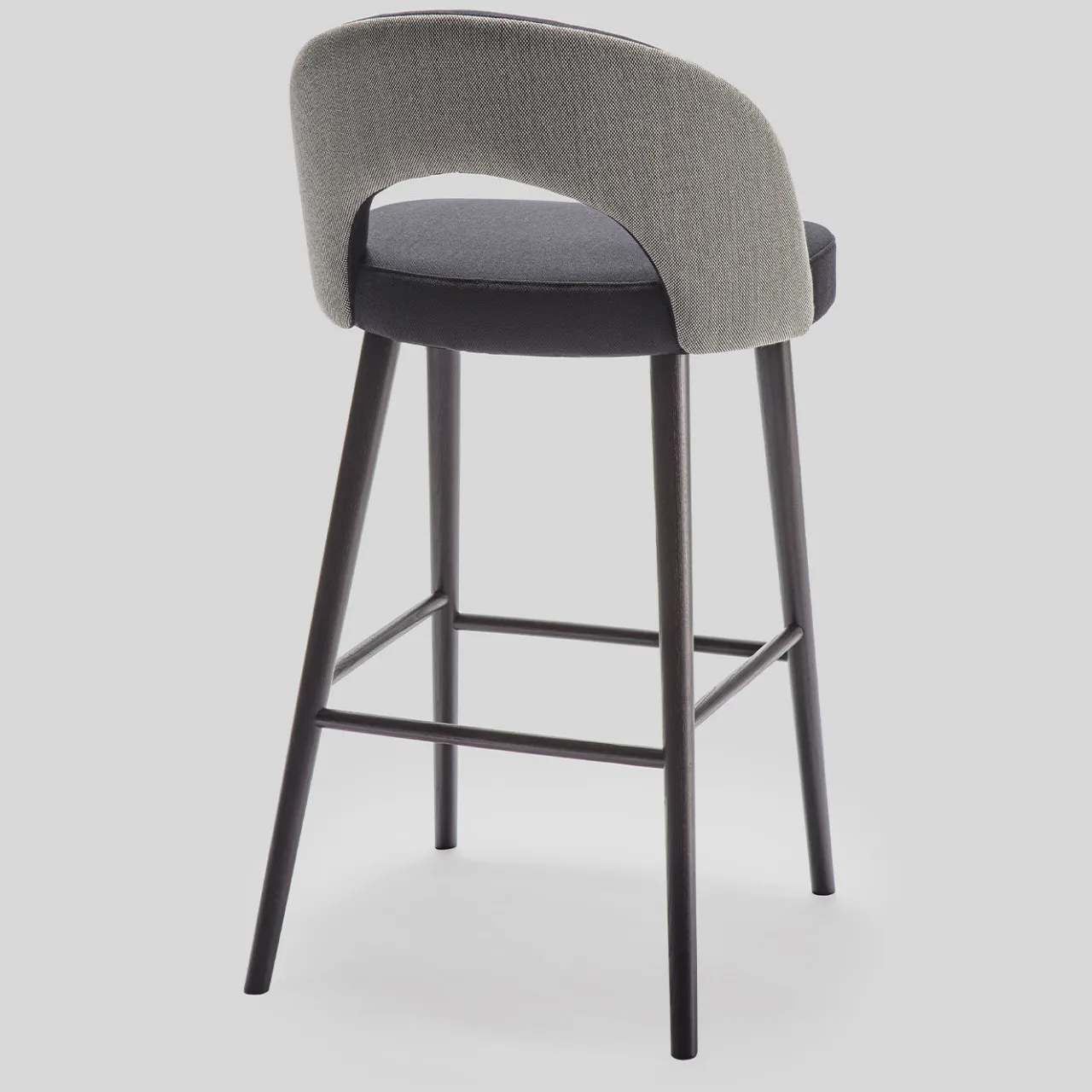 Perfetto da abbinare a una sala da pranzo/zona bar moderna, questo sgabello chic infonderà eleganza in qualsiasi casa. La struttura in legno massiccio di frassino sostiene uno schienale avvolgente con un dettaglio di taglio e confluisce in quattro gambe affusolate rifinite in nero. Lo schienale è rivestito in tessuto grigio chiaro all’esterno e antracite all’interno, in tinta con il rivestimento della seduta. Disponibile in alcuni colori e tessuti del catalogo, la struttura è disponibile anche in faggio; per maggiori dettagli, rivolgersi al Concierge.