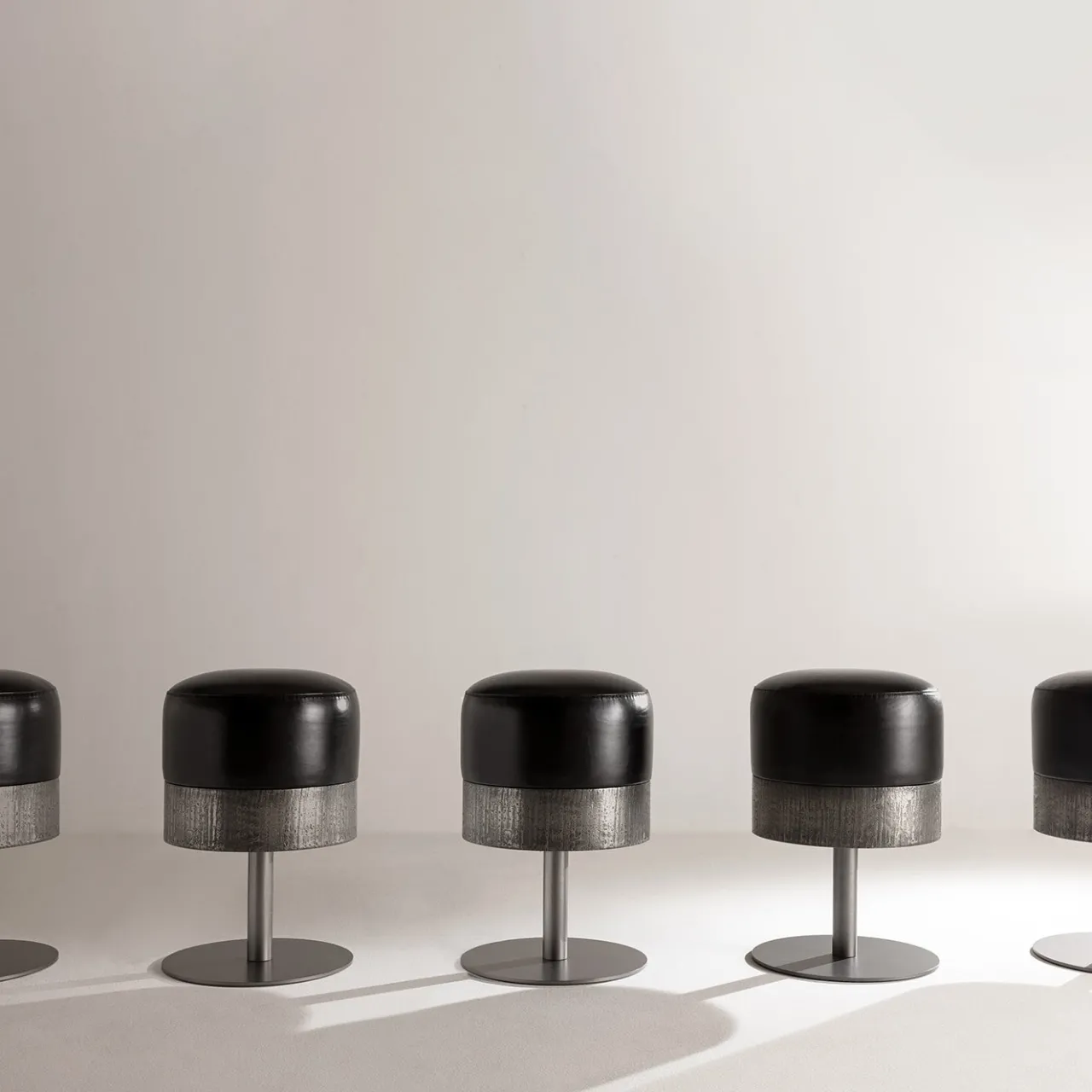 Questo sofisticato pouf girevole unisce l’elegante pelle nera a una base in metallo liquido di ispirazione industriale, creando un’estetica raffinata e al tempo stesso tagliente. La seduta lucida offre una sensazione di lusso, mentre la struttura cilindrica garantisce durata e stabilità. Progettato per essere versatile, può essere utilizzato come elegante seduta aggiuntiva o come accento accattivante. Per ulteriori dettagli, contattare il Concierge.
