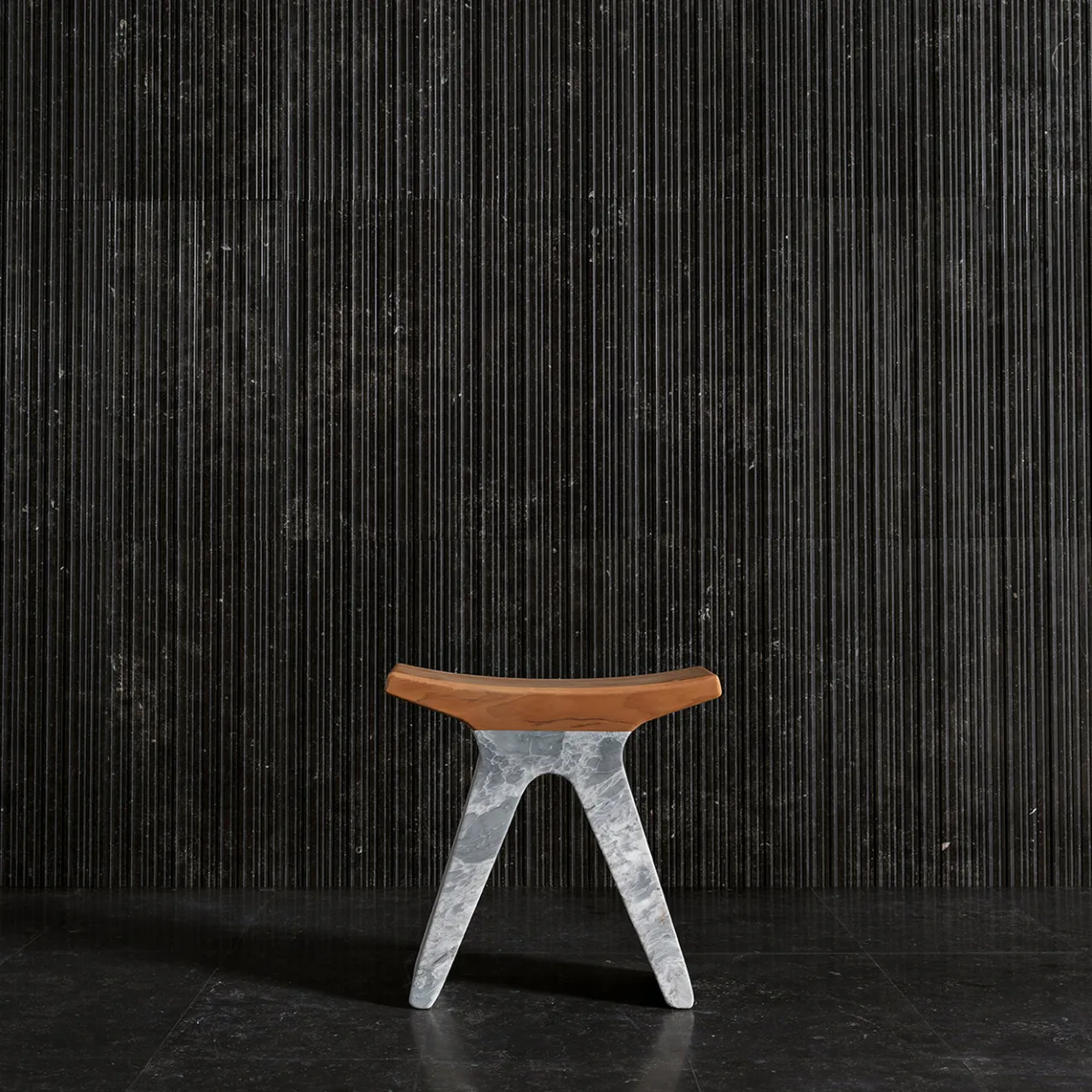 Lo sgabello Pigreco presenta una forma primitiva e senza tempo che fonde diverse lastre di marmo con spessori e colori variabili, riutilizzate da ritagli per creare un design unico e armonioso. Leggero e versatile, funge da seduta, superficie di supporto o accento scultoreo, facilmente spostabile tra spazi come bagni e soggiorni. La sua combinazione equilibrata di materiali naturali sottolinea sia l’appeal estetico che l’adattabilità pratica.