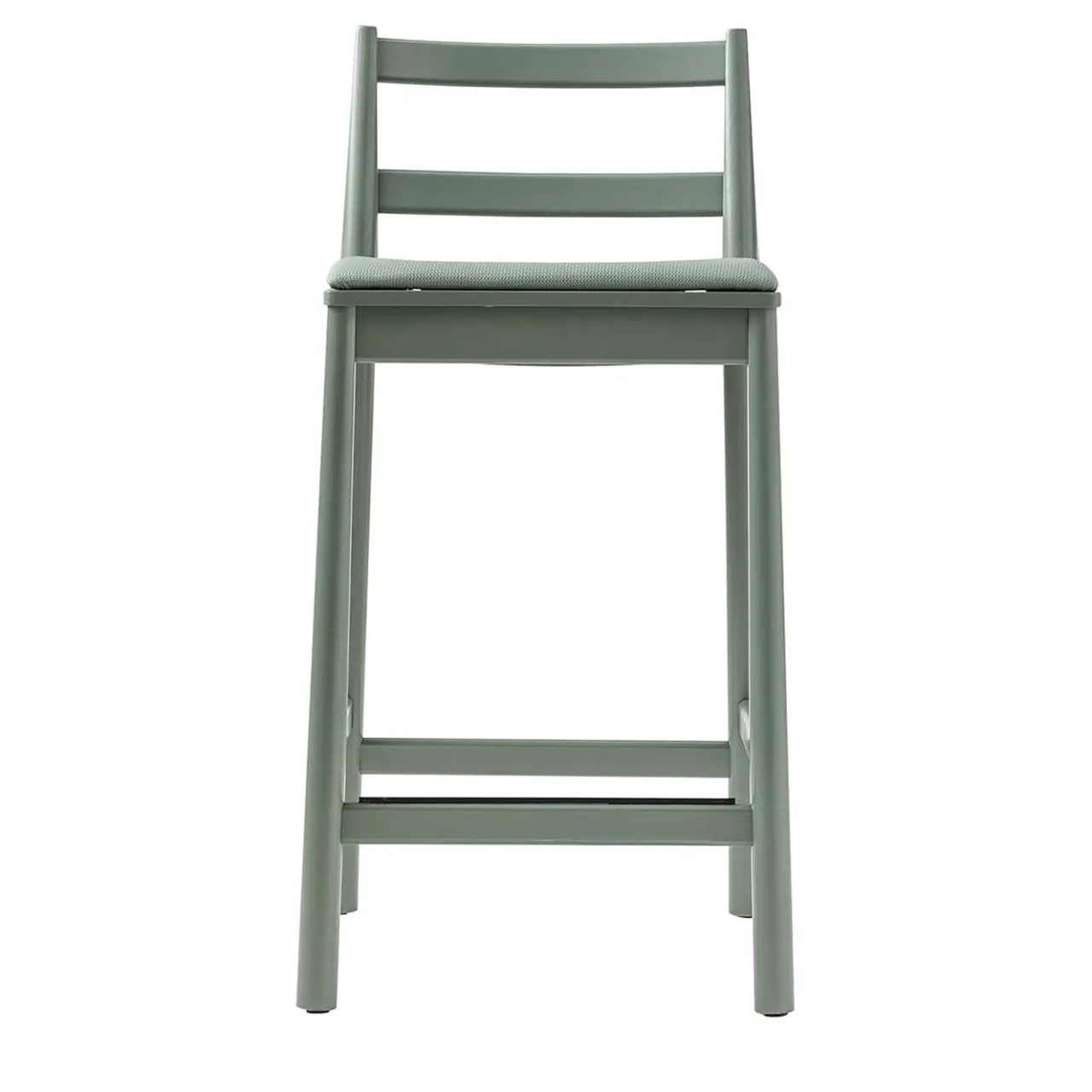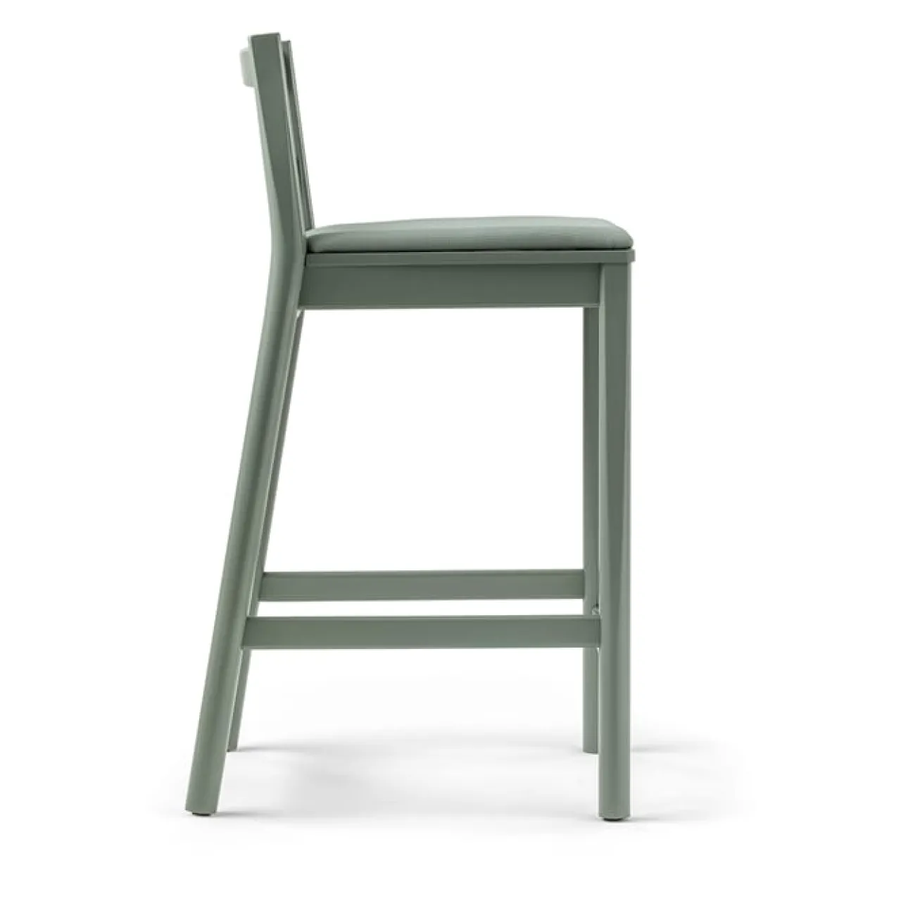Questo sgabello, che fa parte della Collezione Julie, composta da soluzioni di seduta che fondono eleganza e semplicità in pezzi puliti e di ispirazione rustica disegnati da Emilio Nanni, si distingue per la seduta morbidamente imbottita (cat. E Camira Synergy LDS54) e rivestita in tessuto verde che si abbina alla tonalità verde salvia della struttura in faggio massiccio (RAL 6021). È disponibile anche in un’ampia gamma di colori a scelta; per informazioni, contattare il Concierge.