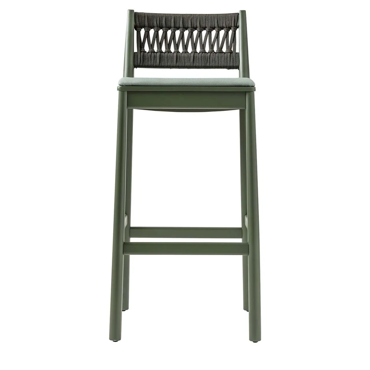Questo sgabello firmato Emilio Nanni dona carattere a interni moderni o rustico-chic, sia residenziali che contract, grazie al suo audace verde e al design dal forte impatto visivo. Interpreta in chiave contemporanea l’archetipo della sedia, unendo tradizione e innovazione. Realizzato artigianalmente in legno di faggio verniciato verde (RAL 6003), presenta una seduta imbottita in tessuto (cat. E Synergy LDS49) e uno schienale impreziosito da un originale intreccio in corda. Per personalizzazioni e varianti è possibile contattare il Concierge.