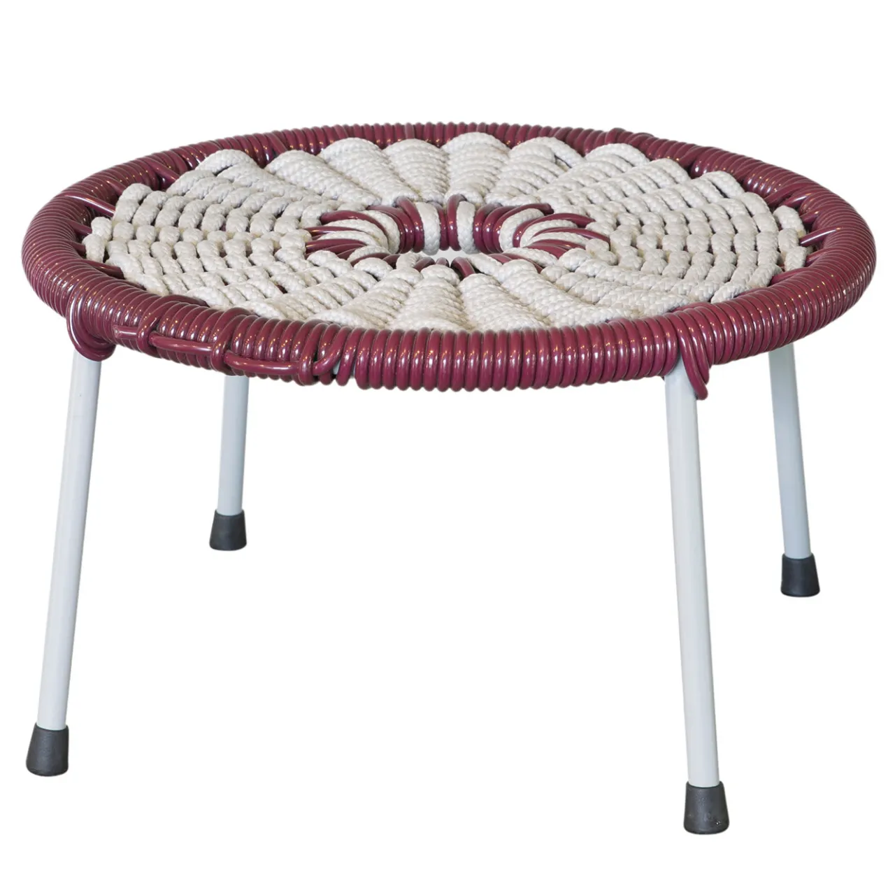 Un’aggiunta gradita a qualsiasi spazio interno o esterno, questo sgabello emana un’eleganza discreta e versatilità. Fondendo linee moderne con un tocco di atmosfera rustica, il telaio è robustamente realizzato in ferro verniciato a polvere bianco sporco e presenta un sedile durevole e resistente all’acqua con un motivo a intreccio a cesta, intrecciato direttamente sulla struttura con PVC bordeaux lucido e corda tecnica in polipropilene bianco sporco. Contatta il Concierge per dettagli sulle opzioni di colore, finitura e dimensioni disponibili.