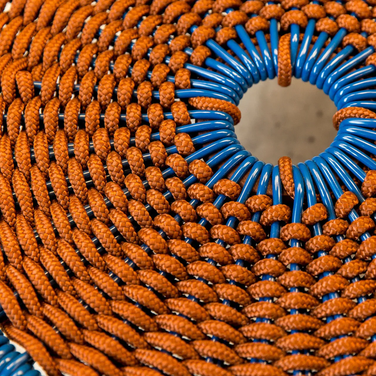 Realizzato a mano con attenzione ai dettagli, questo affascinante sgabello vanta linee essenziali che combinano diversi materiali in un design tradizionale con un tocco moderno. Il sedile rotondo e il ripiano inferiore, incorniciati da una struttura in ferro verniciato a polvere color bordeaux, mettono in mostra una straordinaria combinazione di colori tra il PVC blu elettrico lucido (trama) e la corda tecnica in polipropilene ruggine (ordito). Adatto per interni ed esterni, la tessitura a mano è costruita direttamente sul telaio. Disponibile in tre altezze, in vari colori e in acciaio inossidabile, si prega di contattare il Concierge per ulteriori dettagli.