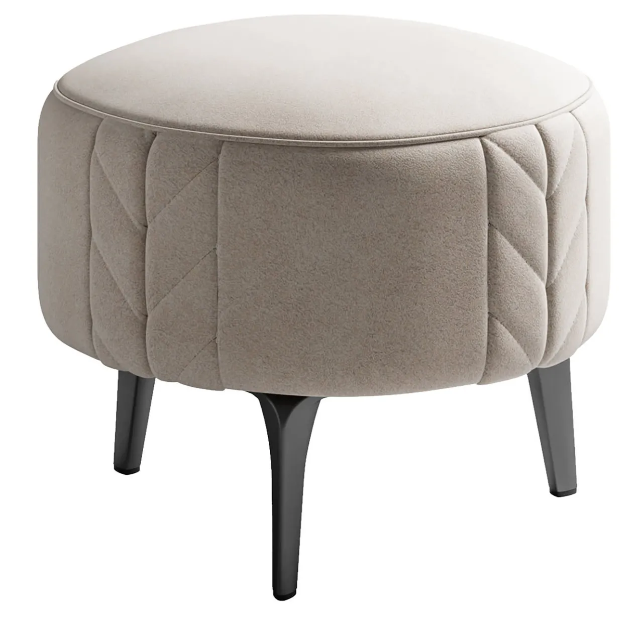 Pouf con piedi in metallo e completamente imbottito.