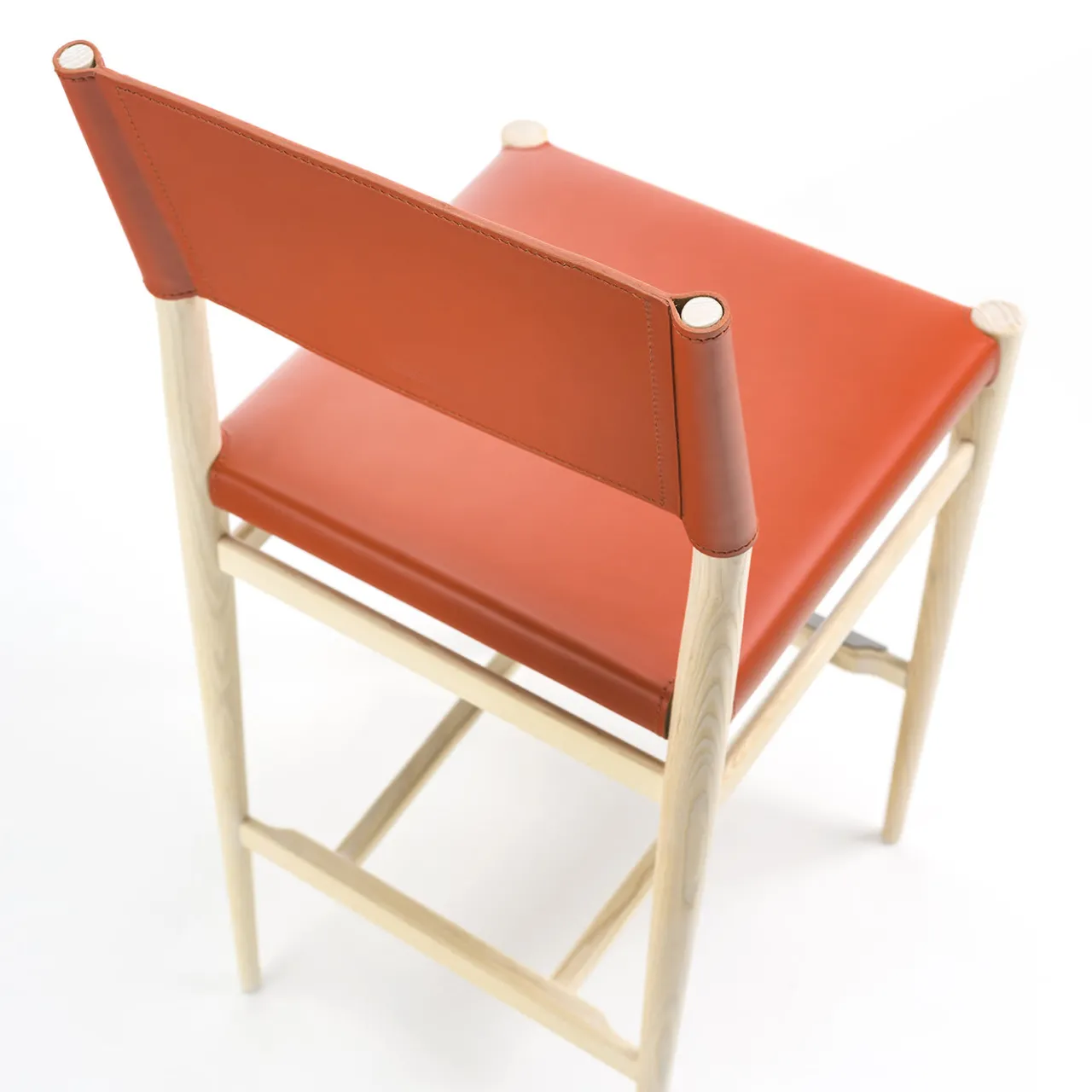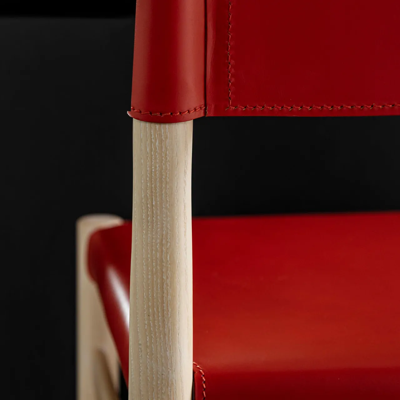 La collezione Ledermann, disegnata da Tom Kelley, ha una struttura in legno con quattro gambe di forma tubolare conica. La seduta e lo schienale sono rivestiti in pelle; il retro è rivestito solo da una cinghia in pelle. Le geometrie lineari caratterizzate da un taglio semplice ma netto e l’accostamento di due materiali consistenti come il legno e la pelle richiamano la naturalezza del design scandinavo. Struttura in frassino sbiancato e rivestimento in pelle nel colore “Arancio”. Tutti i componenti sono disponibili in altri colori.