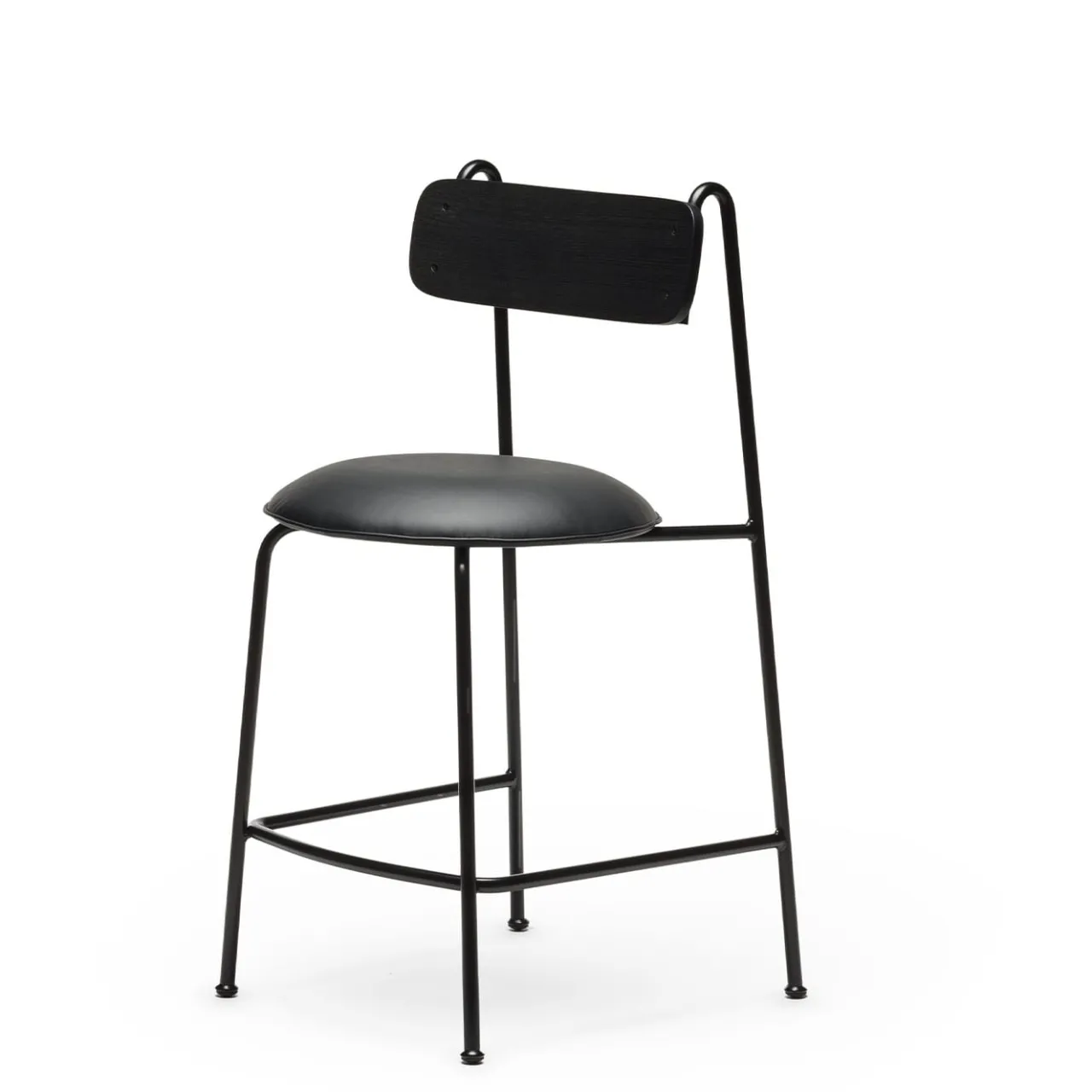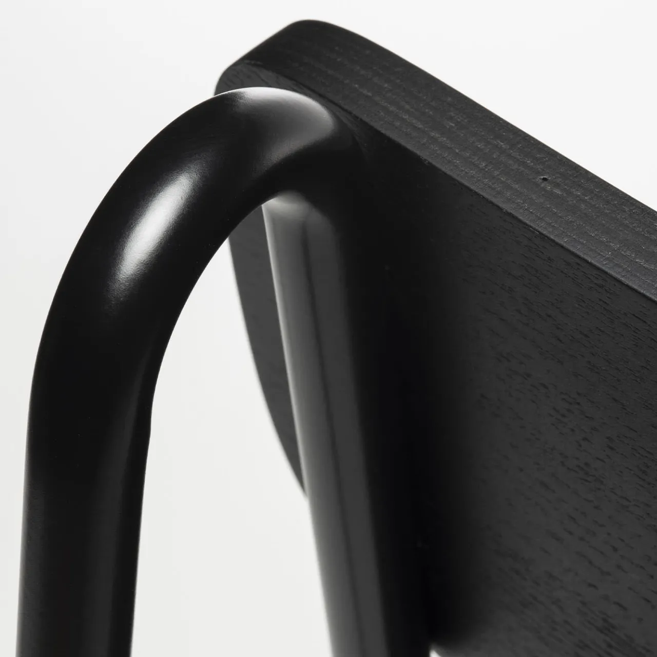 Struttura in metallo verniciato a polvere nera con schienale impiallacciato in frassino naturale lucido e seduta imbottita in ecopelle nera. Lena fonde in modo splendido il minimalismo giocoso con l’influenza del design grafico, creando un’armonia accattivante tra stile e praticità. L’elegante struttura in metallo contrasta con la morbida seduta imbottita e ricurva, mostrando un sapiente equilibrio tra forma e comfort.