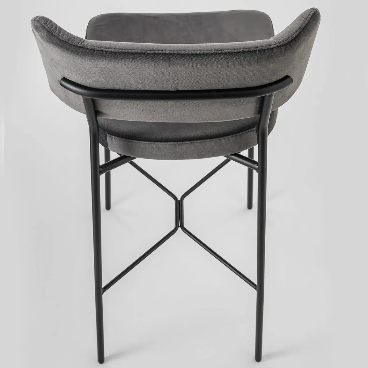 Splendido pezzo di eleganza vintage, questo sgabello sfoggia un look total black e una squisita silhouette d’ispirazione anni ’50. Disegnato da EP Studio, presenta una struttura in metallo laccato nero composta da lunghe e sottili gambe la cui leggerezza contrasta con l’aspetto robusto dell’accogliente seduta e dello schienale, entrambi imbottiti in gommapiuma e rivestiti in velluto pregiato. Perfetto per interni residenziali e commerciali, questo pezzo ergonomico e versatile è disponibile anche in ottone, rame o legno di frassino.