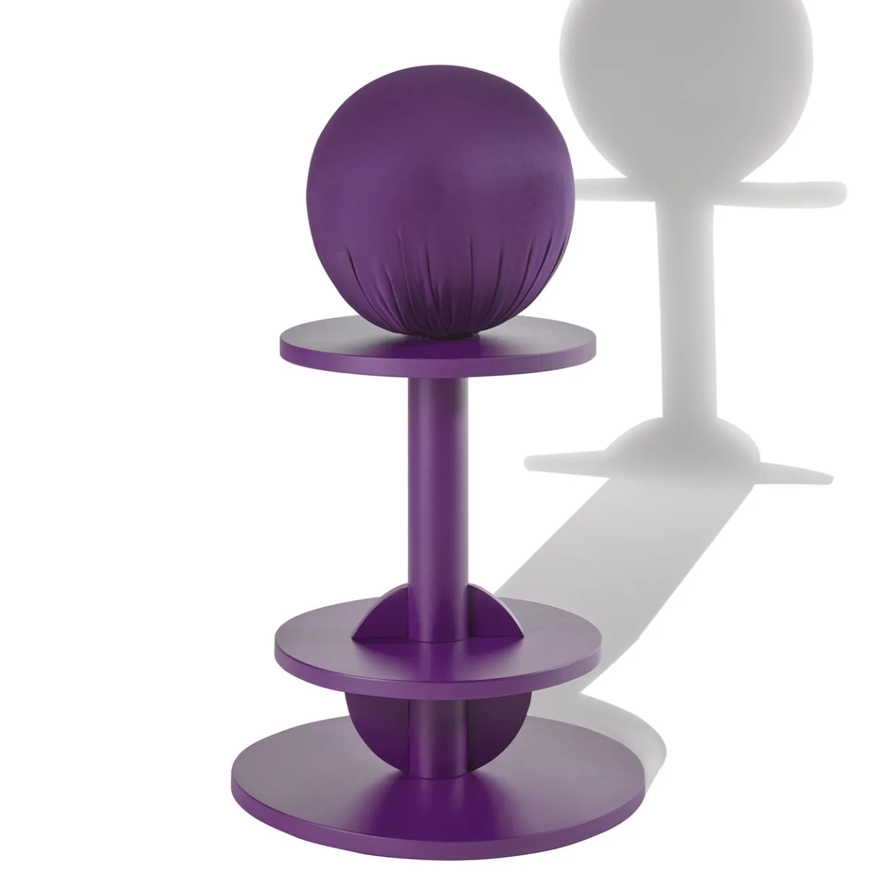 Questo divertente e allegro sgabello viola della designer Anna Polisano si ispira al pedone del gioco degli scacchi. Caratterizzato da una struttura minimalista in legno massiccio sormontata da una sfera in poliuretano imbottita, questo delizioso pezzo può essere abbinato ad altri elementi della stessa collezione Matto per un tocco chic in un salotto o in un bar contemporaneo.