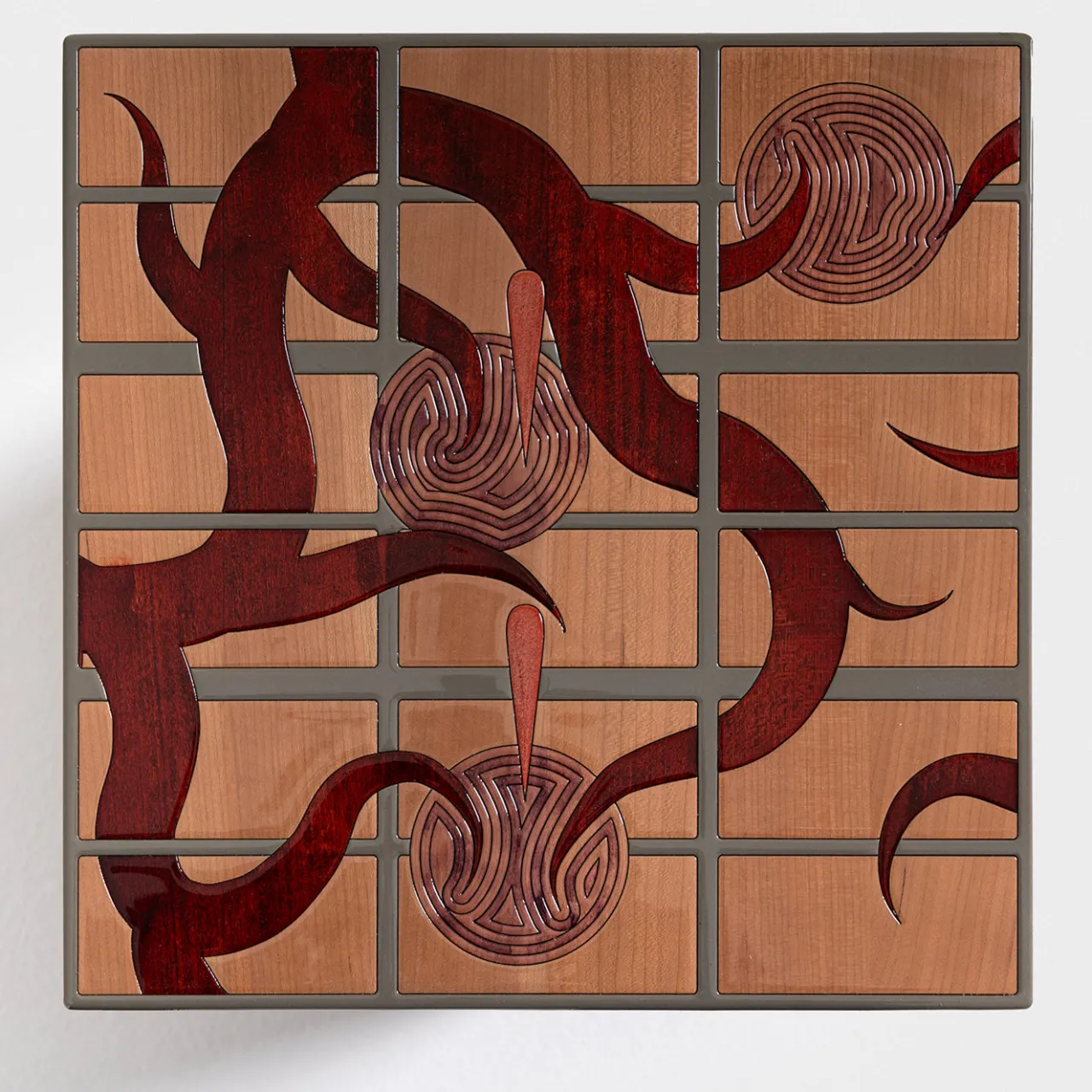 Lo sgabello Orvalho si presenta come un blocco solido scolpito in una precisa forma a T, con tagli graduali lungo i lati che creano prospettive stratificate e dinamiche. Il design bilancia rigore strutturale e motivi organici: viticci e frutti si intrecciano attorno alla forma, rivelando venature, dettagli ornamentali e la complessità della struttura da molteplici angolazioni. La finitura verniciata valorizza il gioco di luci sulla superficie, catturando un momento di maturità naturale sospeso tra ordine e spontaneità. Design di Laurids Gallée.