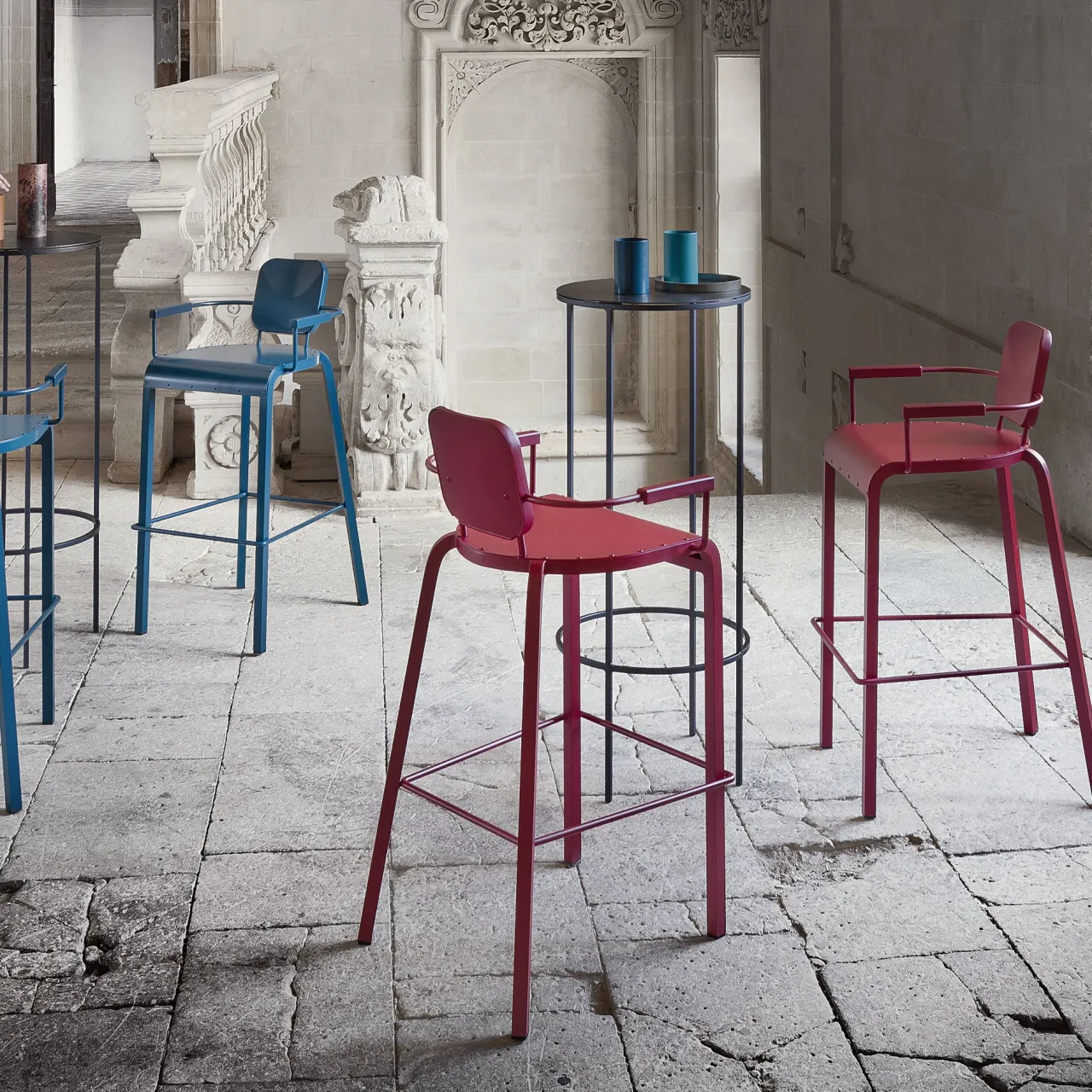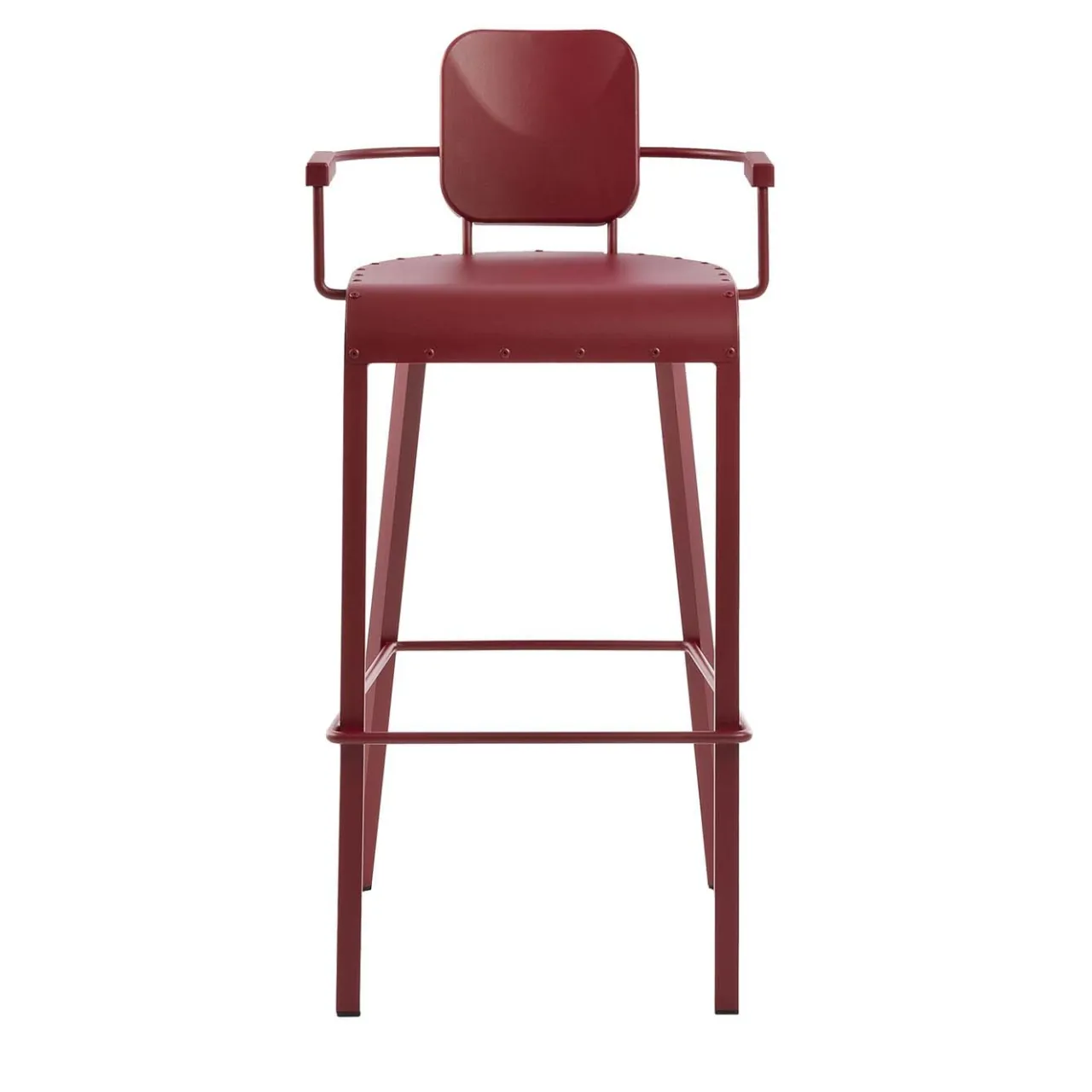 Pezzo d’arredamento funzionale, ergonomico e senza tempo, questo sgabello infonde a qualsiasi spazio interno o esterno un carattere audace e sofisticato. Realizzato in alluminio laccato rosso, vanta un’accattivante silhouette geometrica composta da linee robuste e decise. Poggiata su quattro gambe sottili, la seduta (altezza 65,6 cm) è arricchita da borchie di rivestimento ed è completata da robusti braccioli e da uno schienale squadrato con angoli smussati. Chiedere al Concierge la personalizzazione del colore e il costo nelle seguenti dimensioni: L 55 x L 54 x H 100 cm – altezza seduta 75,5 cm.